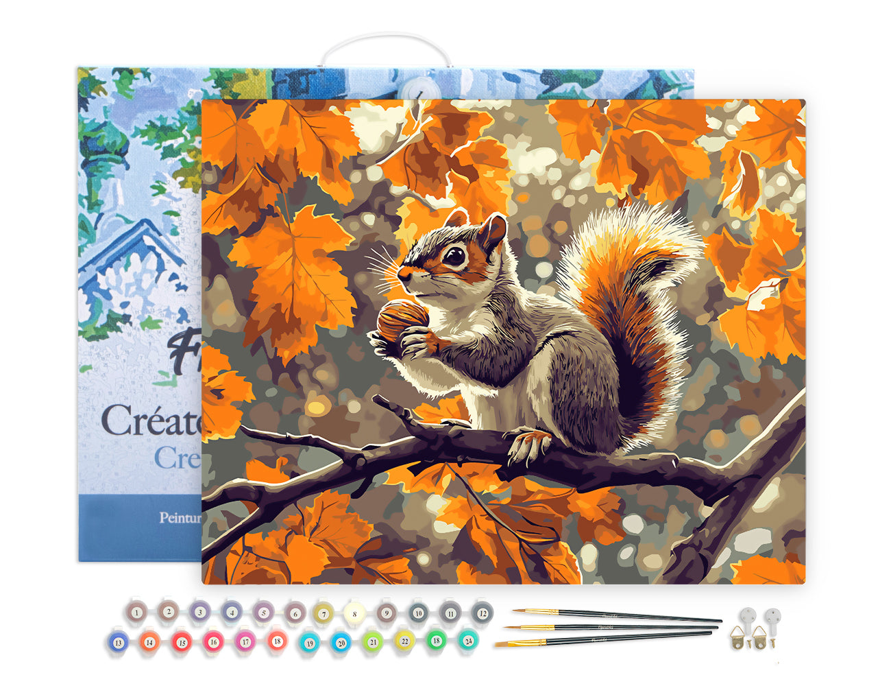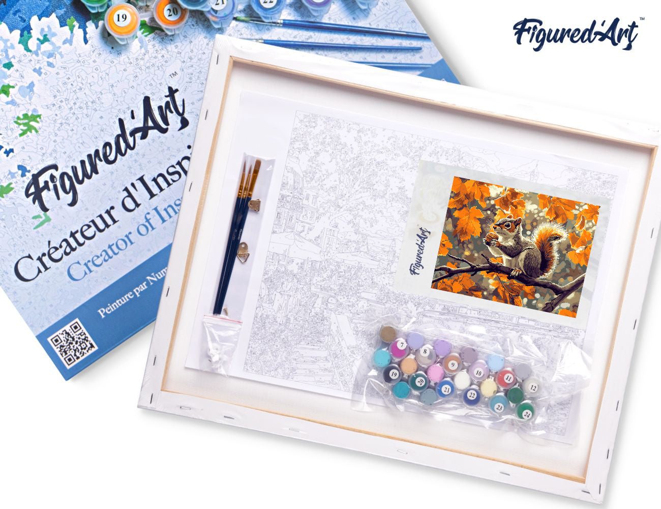 Malen nach Zahlen 40x50cm auf Keilrahmen gespannt Figured’Art Eichhörnchen im Herbst