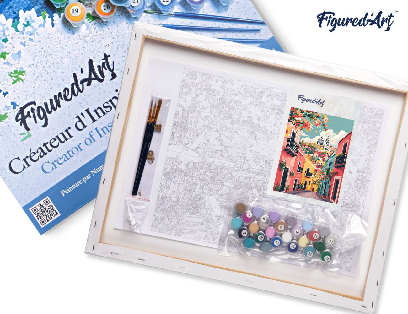 Malen nach Zahlen 40x50cm auf Keilrahmen gespannt Figured’Art Farbenfrohe mediterrane Gasse