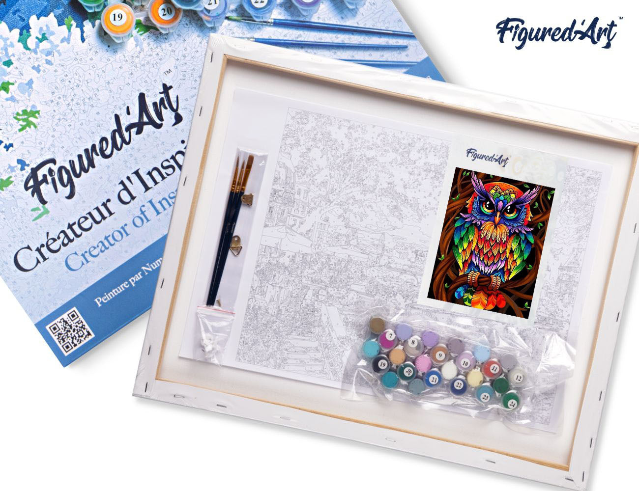 Malen nach Zahlen 40x50cm auf Keilrahmen gespannt Figured’Art Farbige Eule