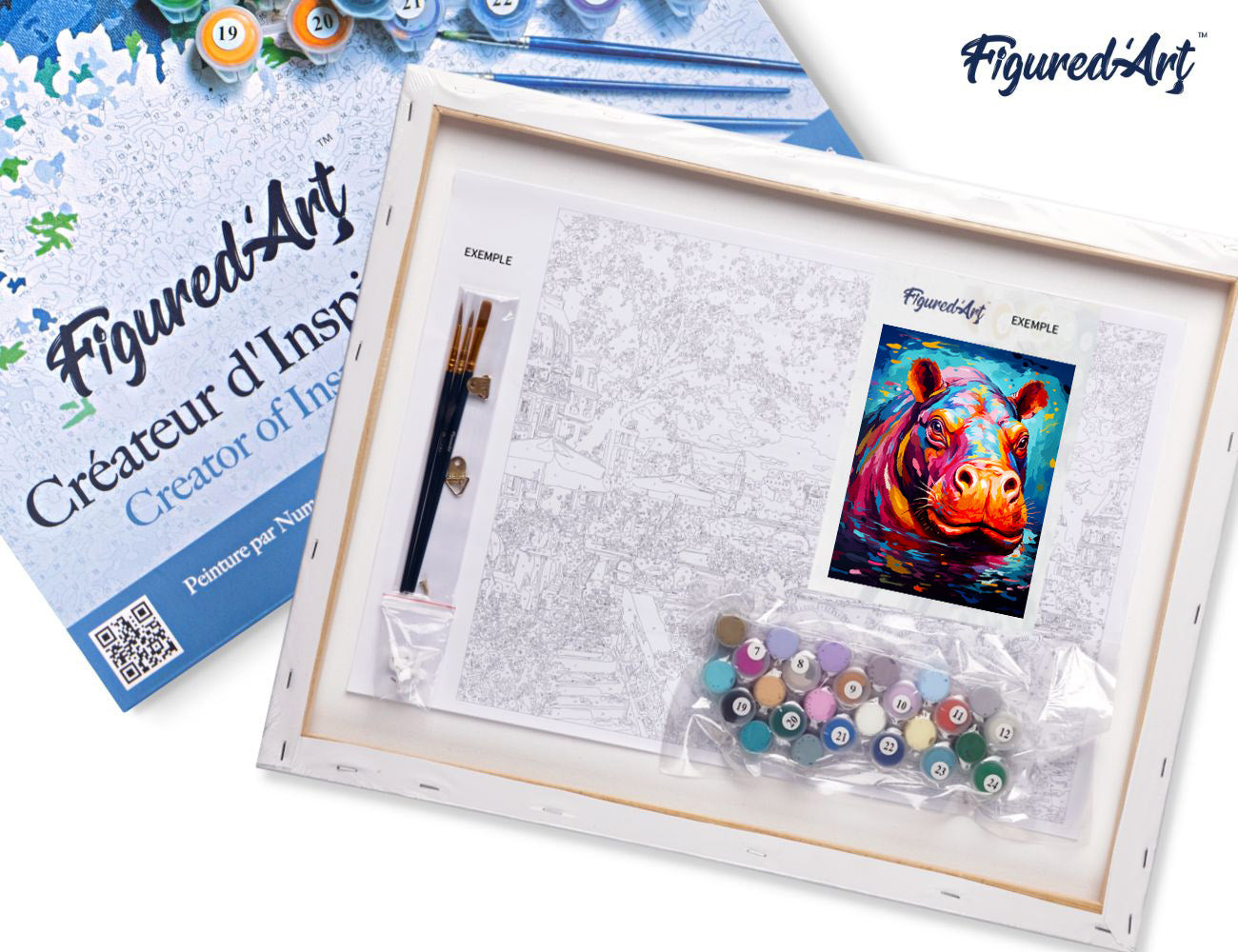 Malen nach Zahlen 40x50cm auf Keilrahmen gespannt Figured’Art Flusspferd Farbenfroh Abstrakt