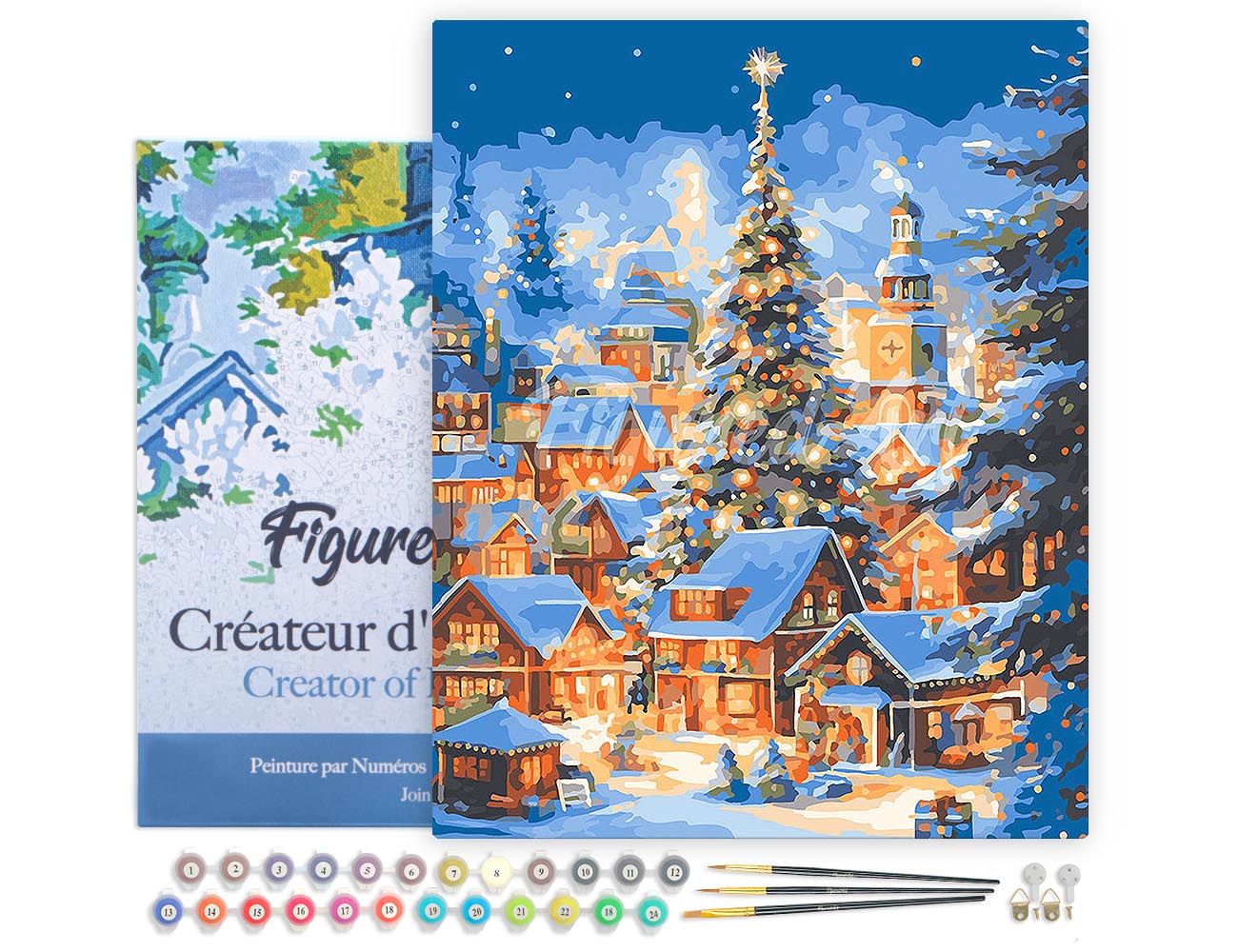 Malen nach Zahlen 40x50cm auf Keilrahmen gespannt Figured’Art Funkelndes Weihnachtsdorf