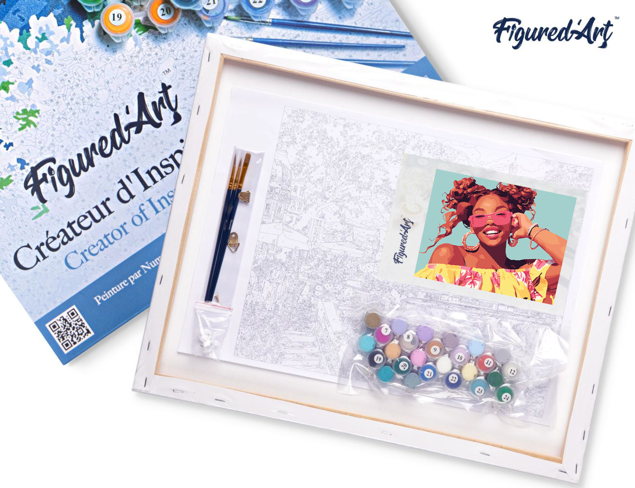 Malen nach Zahlen 40x50cm auf Keilrahmen gespannt Figured’Art Helles Lachen