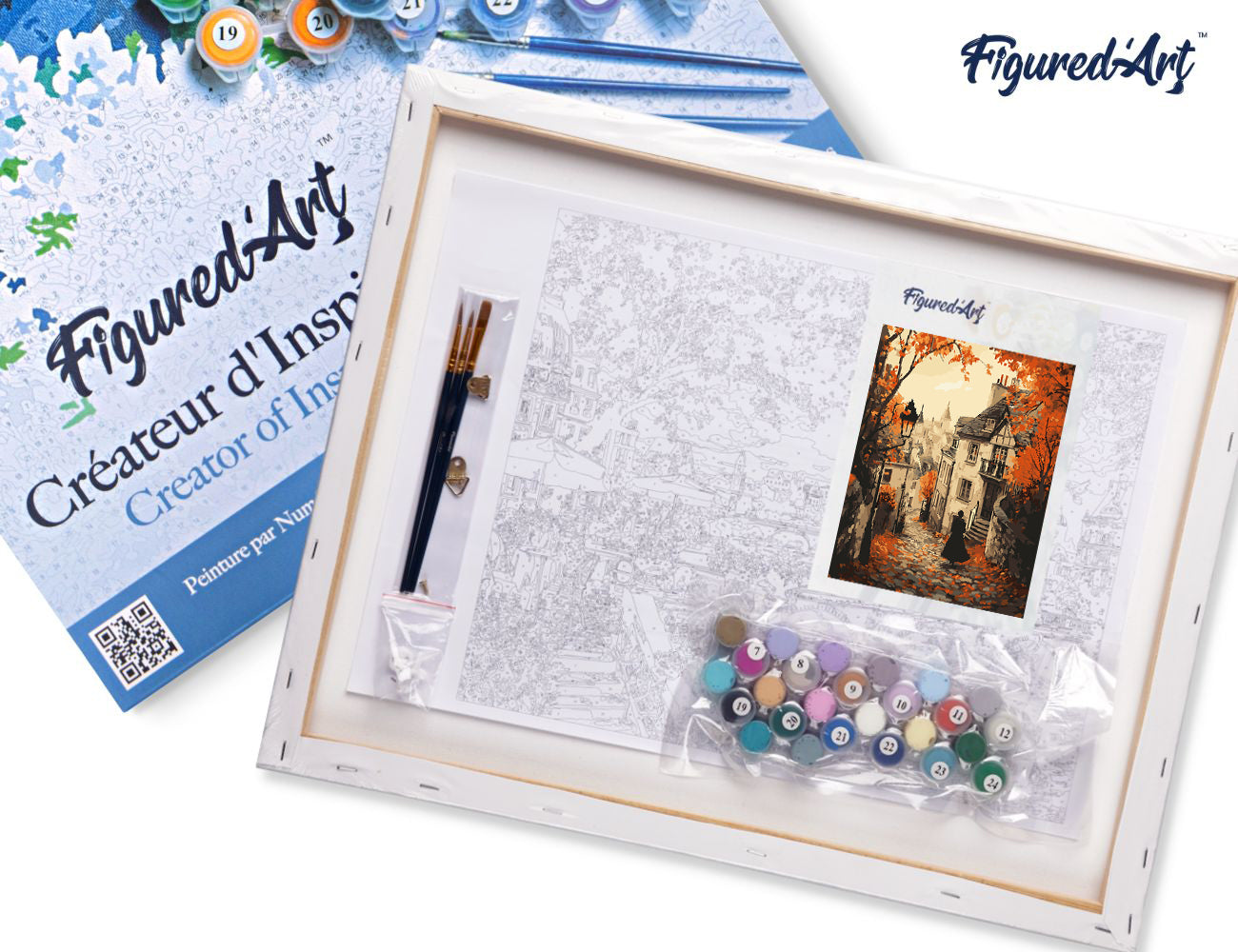 Malen nach Zahlen 40x50cm auf Keilrahmen gespannt Figured’Art Herbstspaziergang und Altstadt