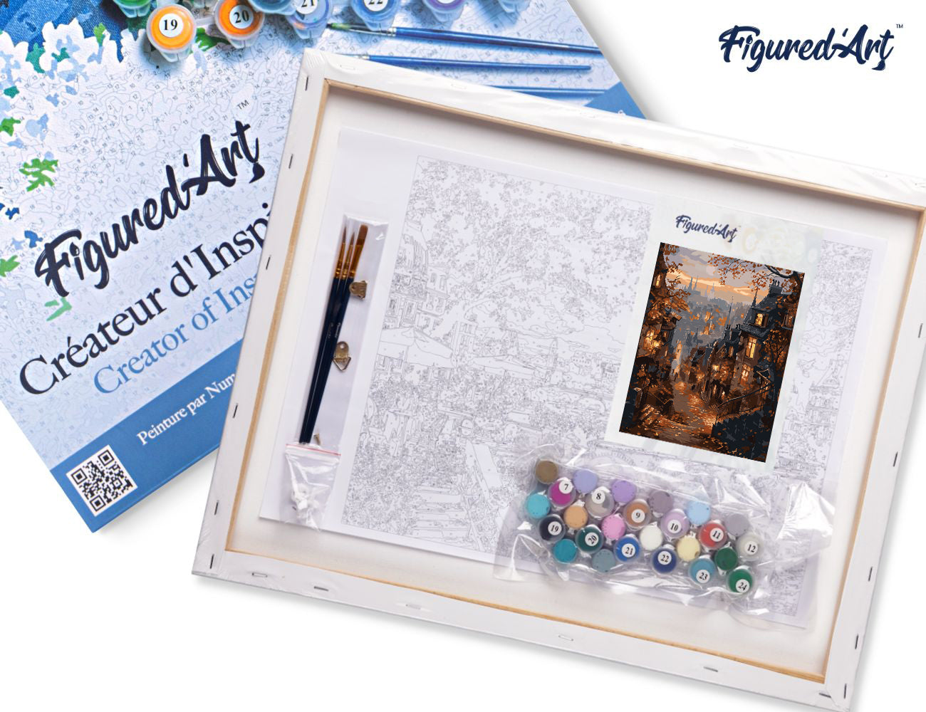 Malen nach Zahlen 40x50cm auf Keilrahmen gespannt Figured’Art Herbststraße und Altstadt