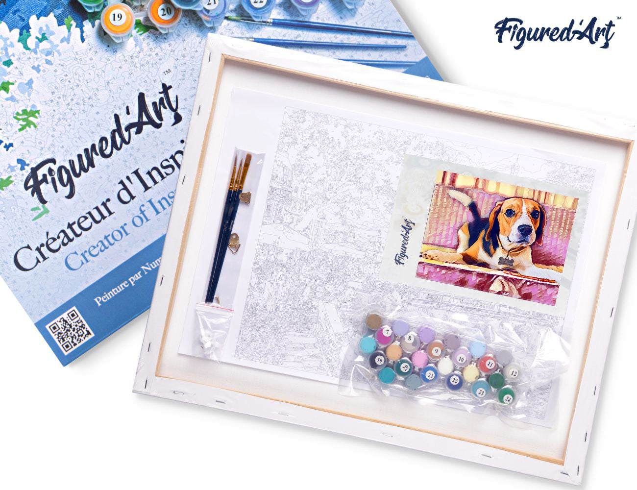 Malen nach Zahlen 40x50cm auf Keilrahmen gespannt Figured’Art Herziger Beagle