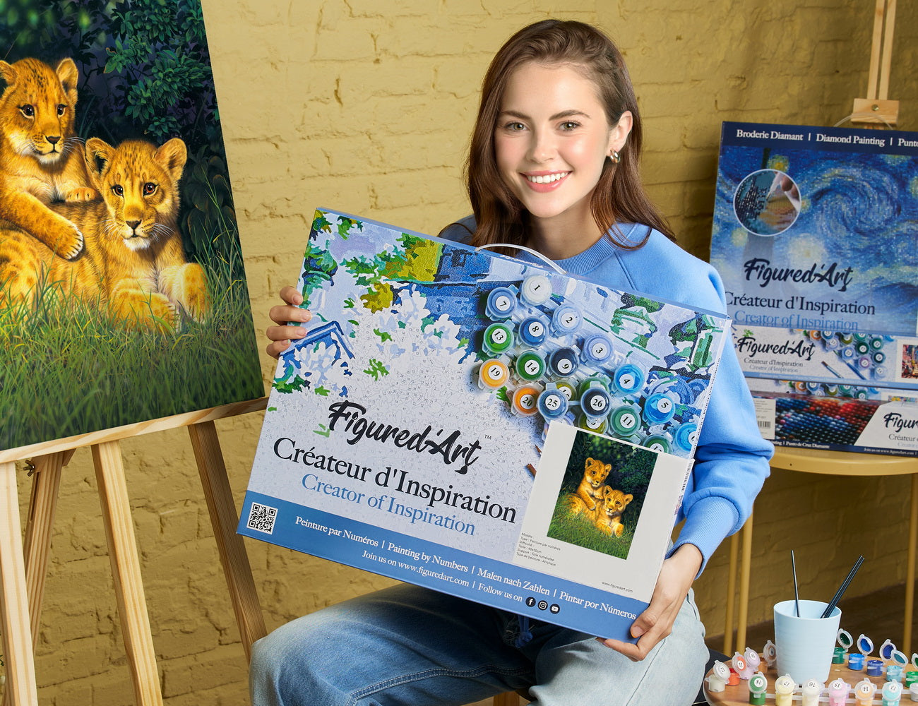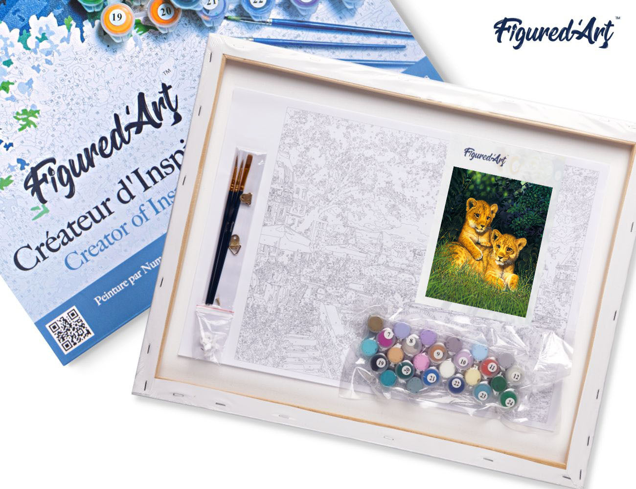 Malen nach Zahlen 40x50cm auf Keilrahmen gespannt Figured’Art Junge Löwen