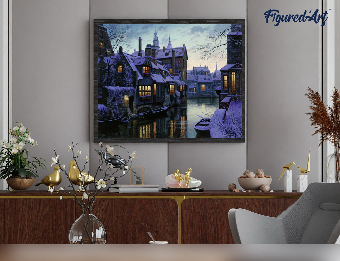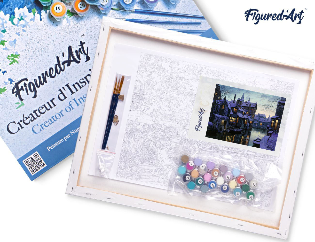 Malen nach Zahlen 40x50cm auf Keilrahmen gespannt Figured’Art Kanal im Winter