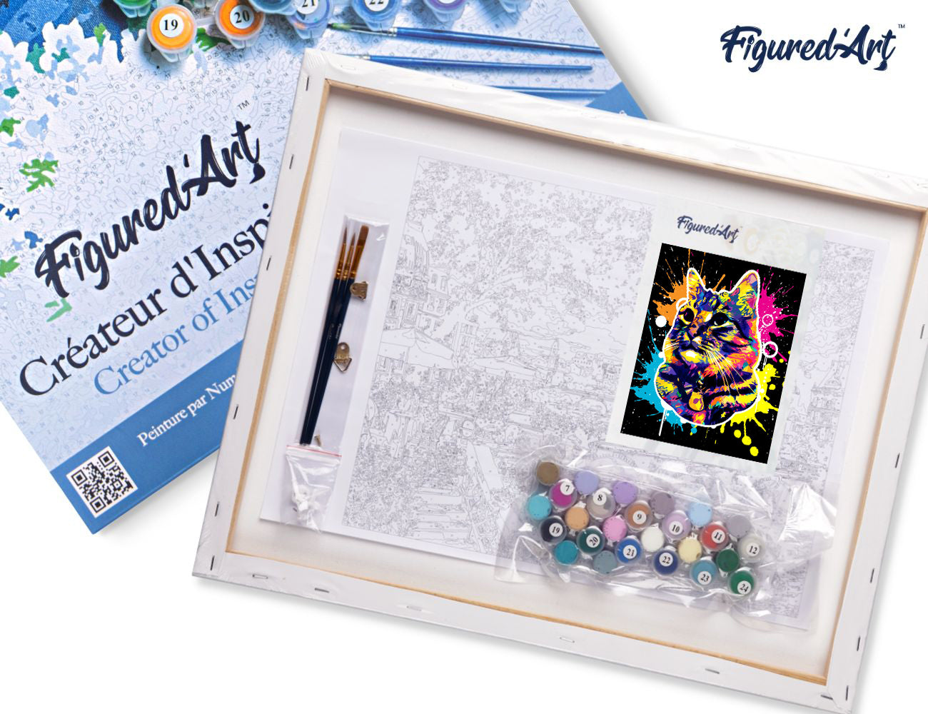 Malen nach Zahlen 40x50cm auf Keilrahmen gespannt Figured’Art Katze Pop Art
