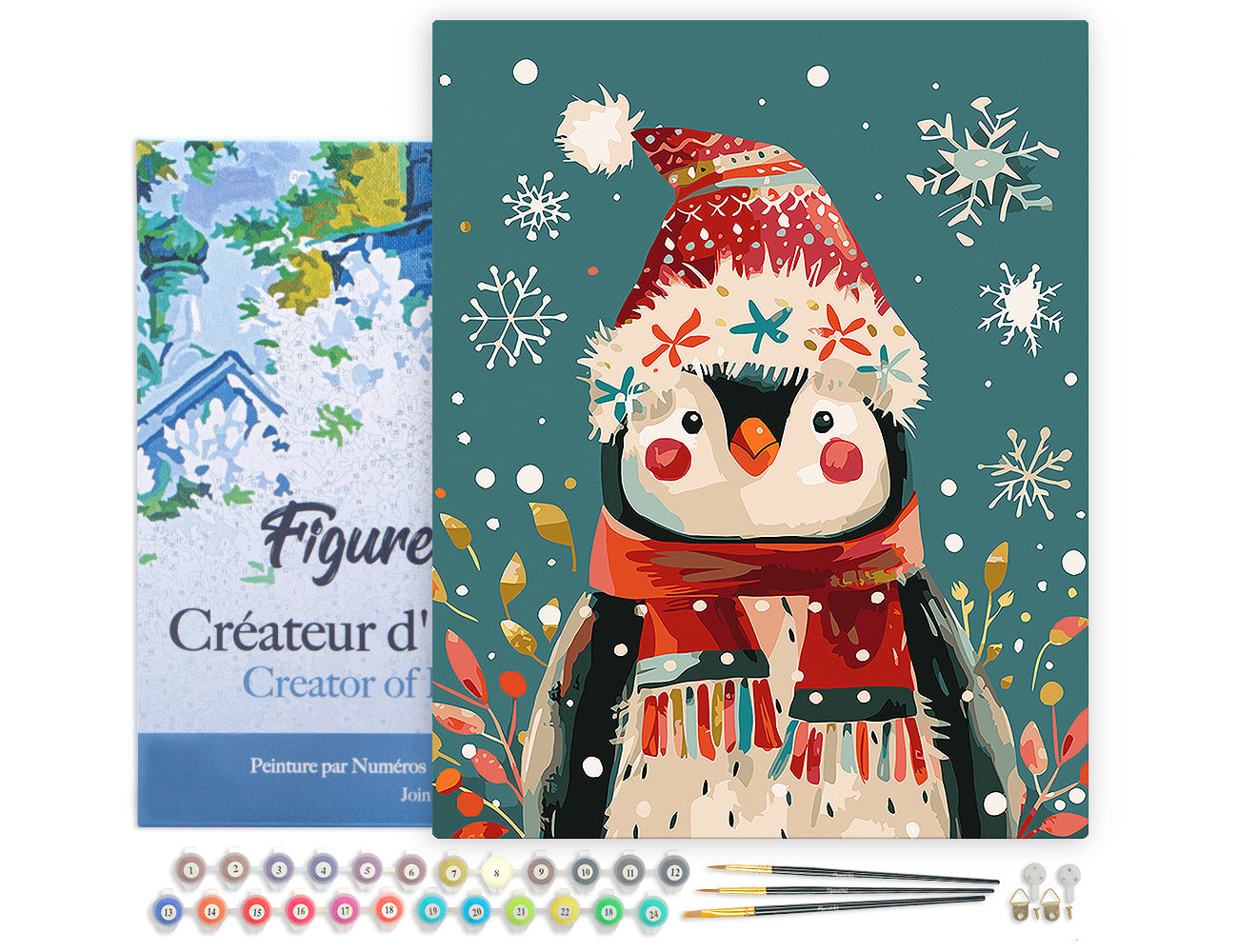 Malen nach Zahlen 40x50cm auf Keilrahmen gespannt Figured’Art Kleiner Weihnachts-Pinguin