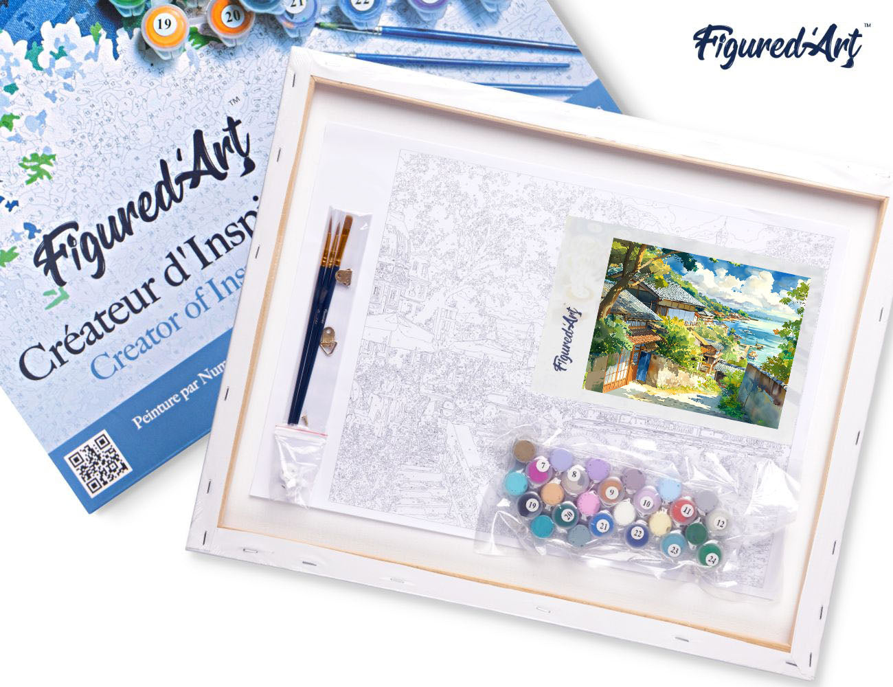 Malen nach Zahlen 40x50cm auf Keilrahmen gespannt Figured’Art Küstenort in Japan