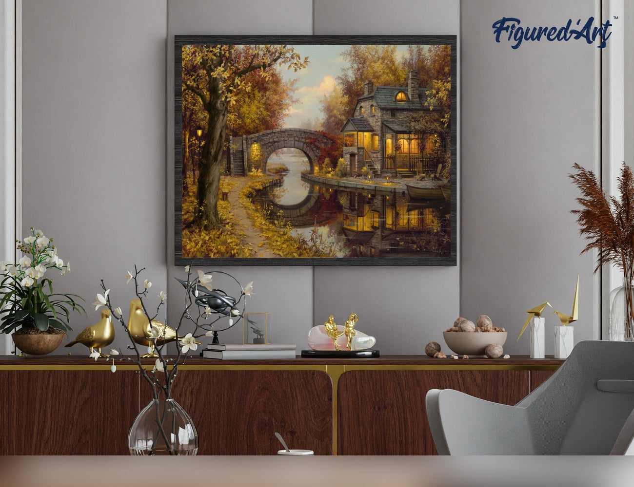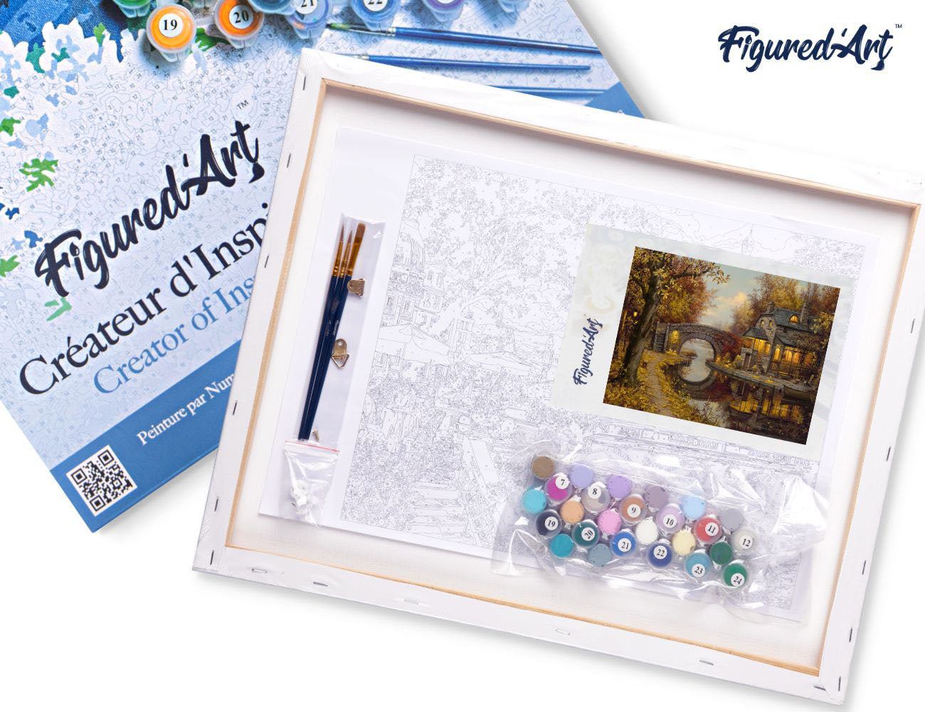 Malen nach Zahlen 40x50cm auf Keilrahmen gespannt Figured’Art Landhaus im Herbst