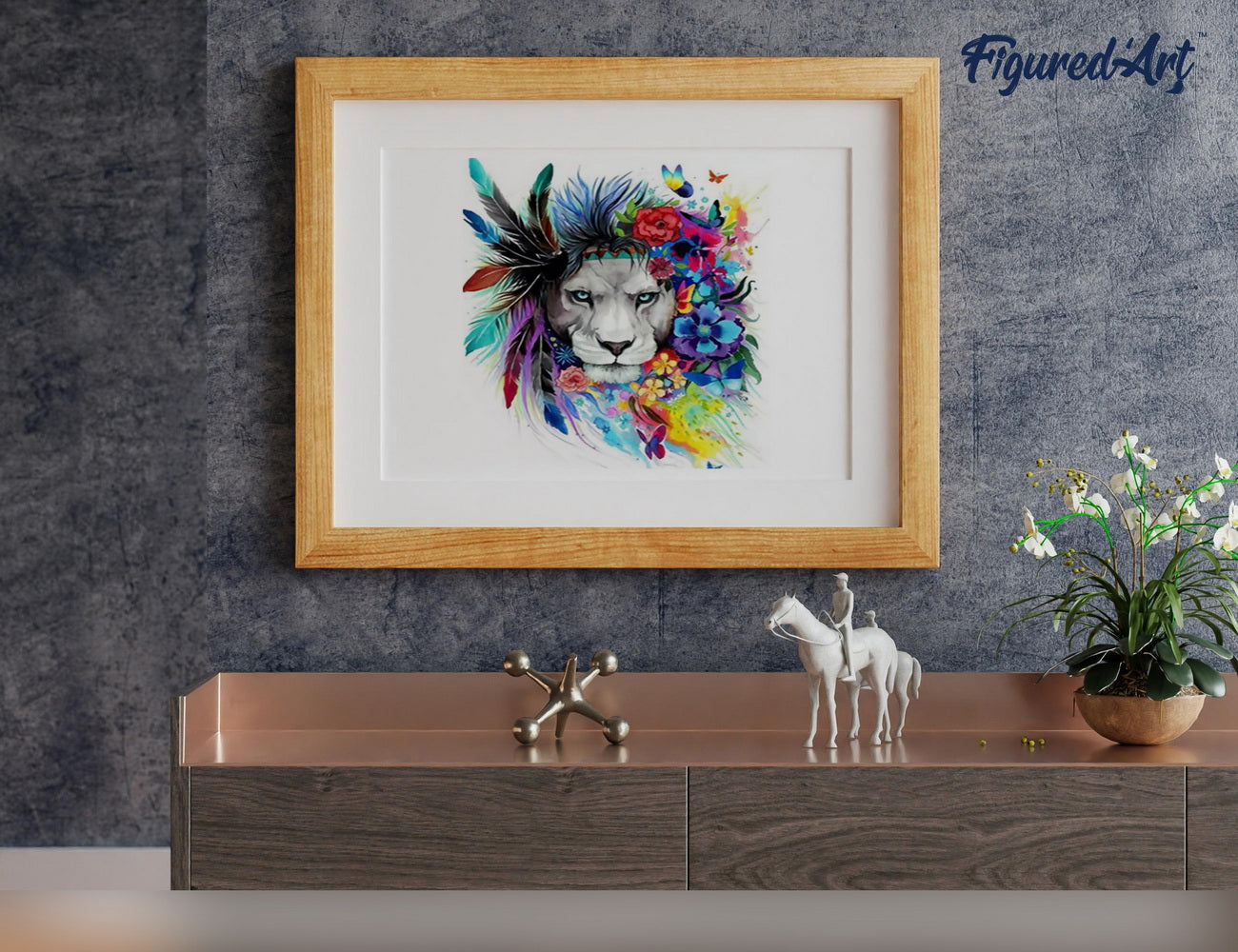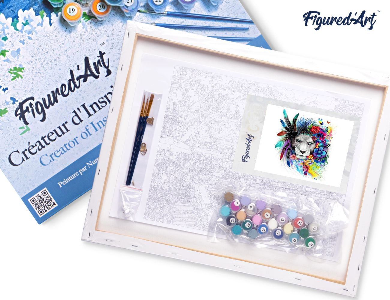 Malen nach Zahlen 40x50cm auf Keilrahmen gespannt Figured’Art Löwe bereit für die Parade