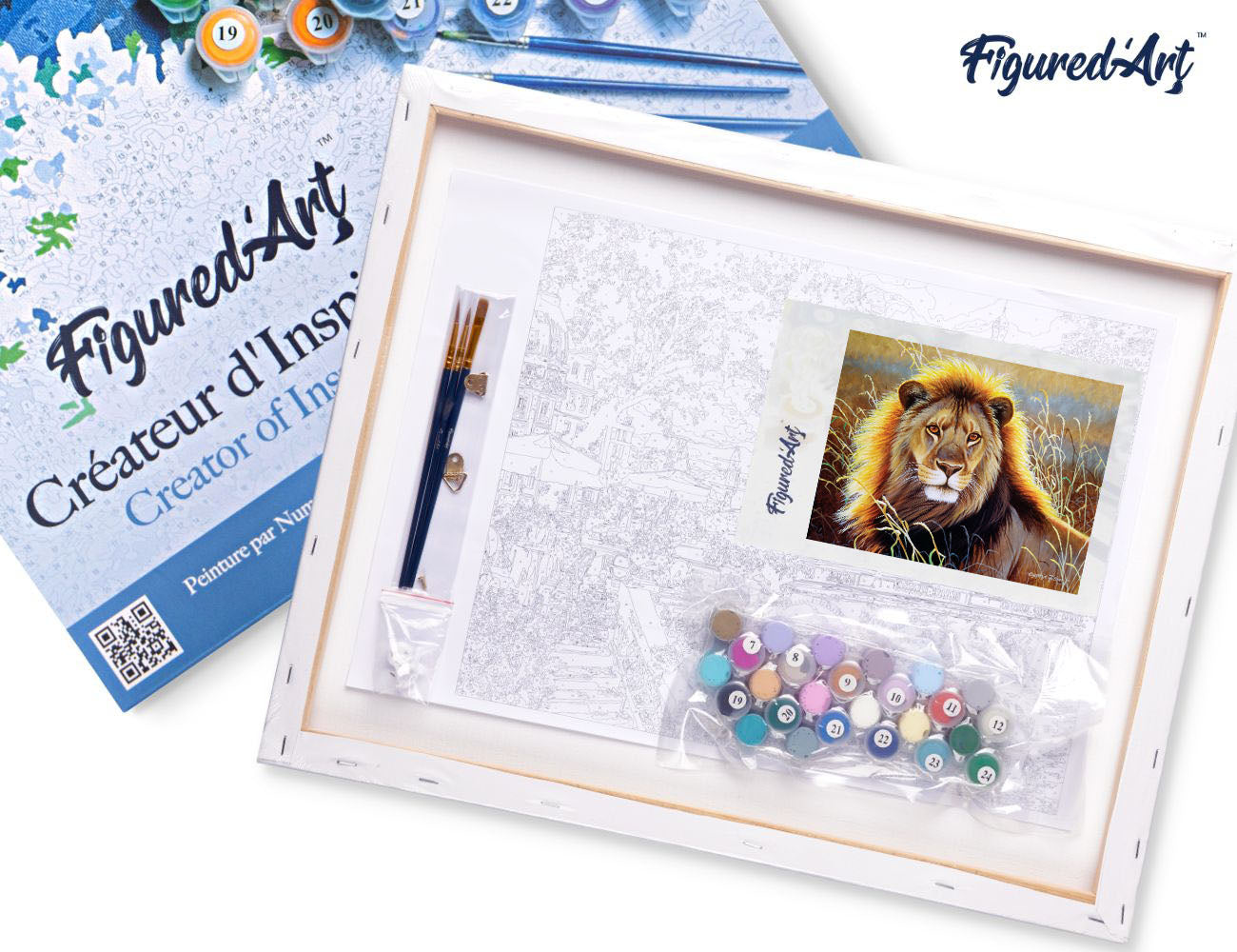 Malen nach Zahlen 40x50cm auf Keilrahmen gespannt Figured’Art Löwe in der Savanne