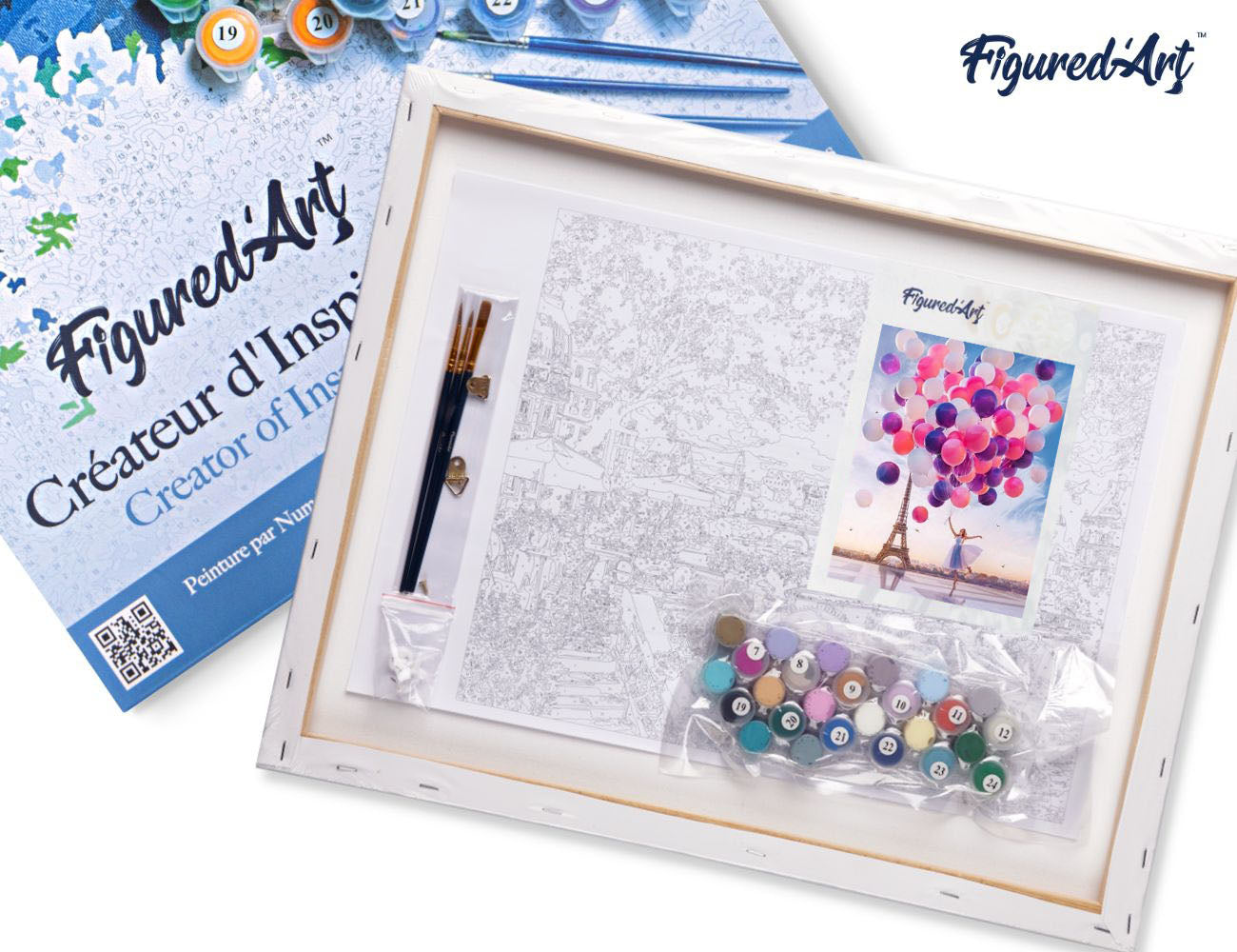 Malen nach Zahlen 40x50cm auf Keilrahmen gespannt Figured’Art Luftballons in Paris