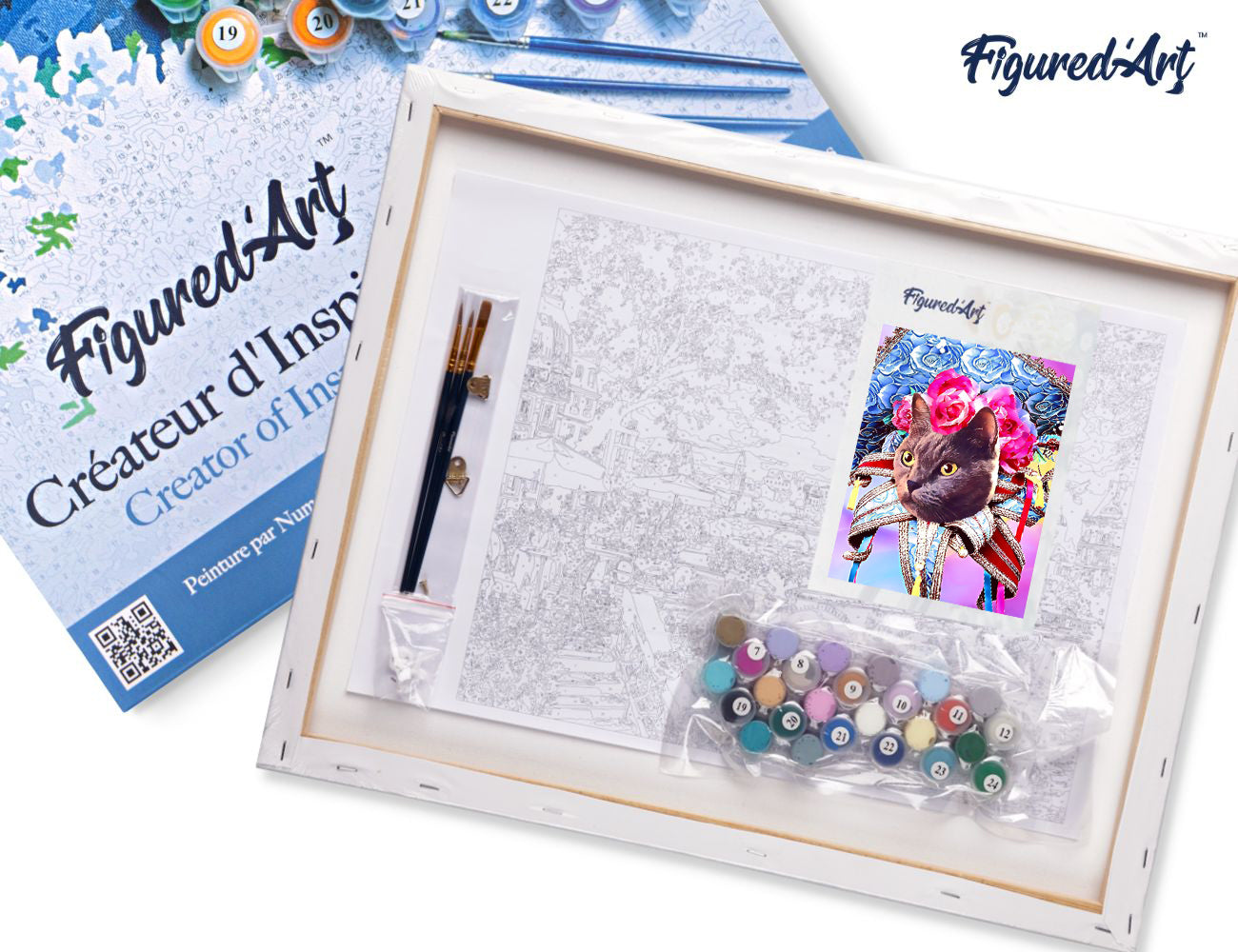 Malen nach Zahlen 40x50cm auf Keilrahmen gespannt Figured’Art Mardigras Katze