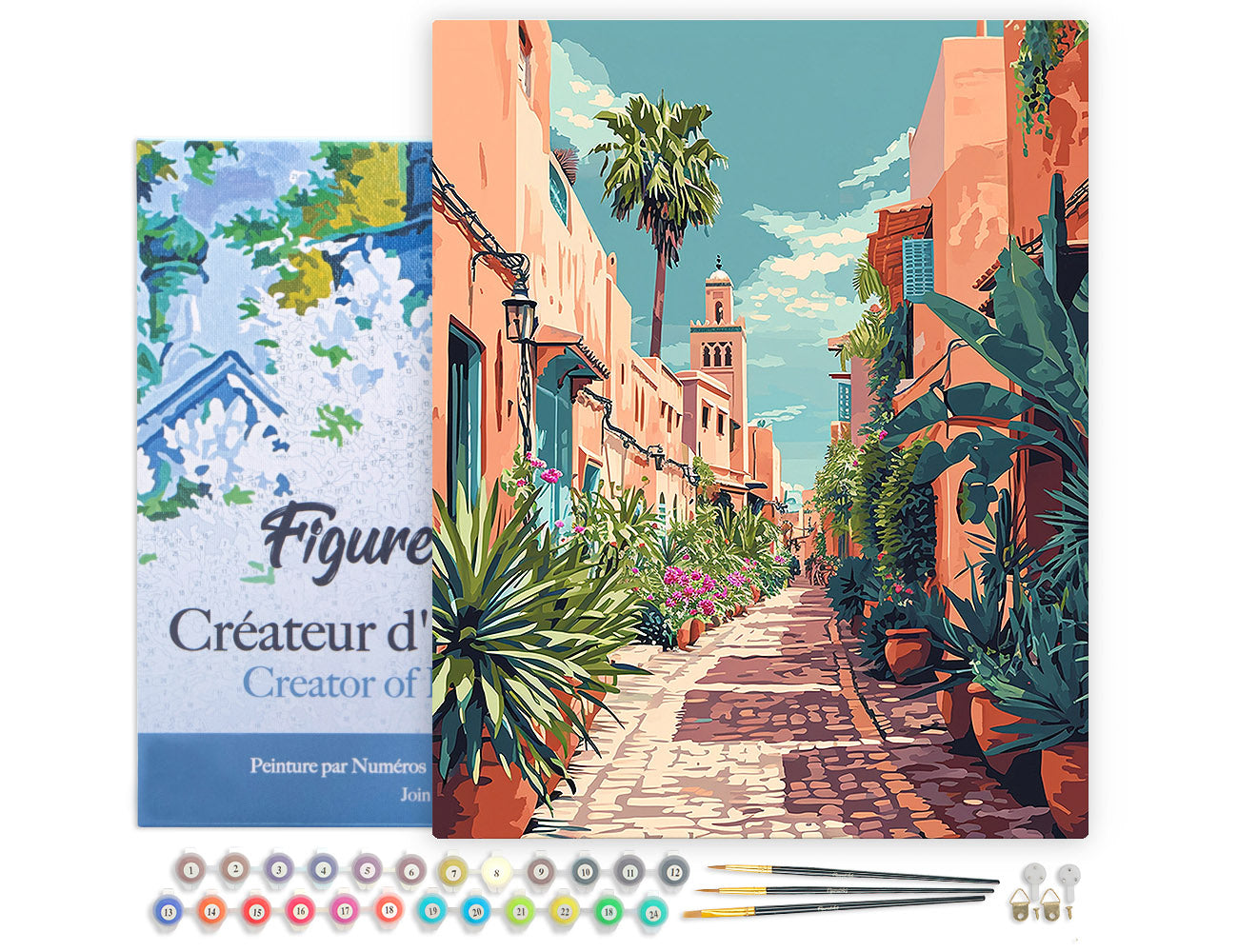 Malen nach Zahlen 40x50cm auf Keilrahmen gespannt Figured’Art Marokkanische Gasse