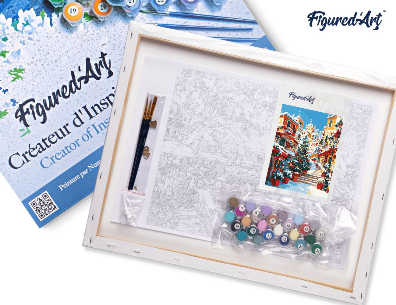 Malen nach Zahlen 40x50cm auf Keilrahmen gespannt Figured’Art Mediterranes Weihnachtsdorf
