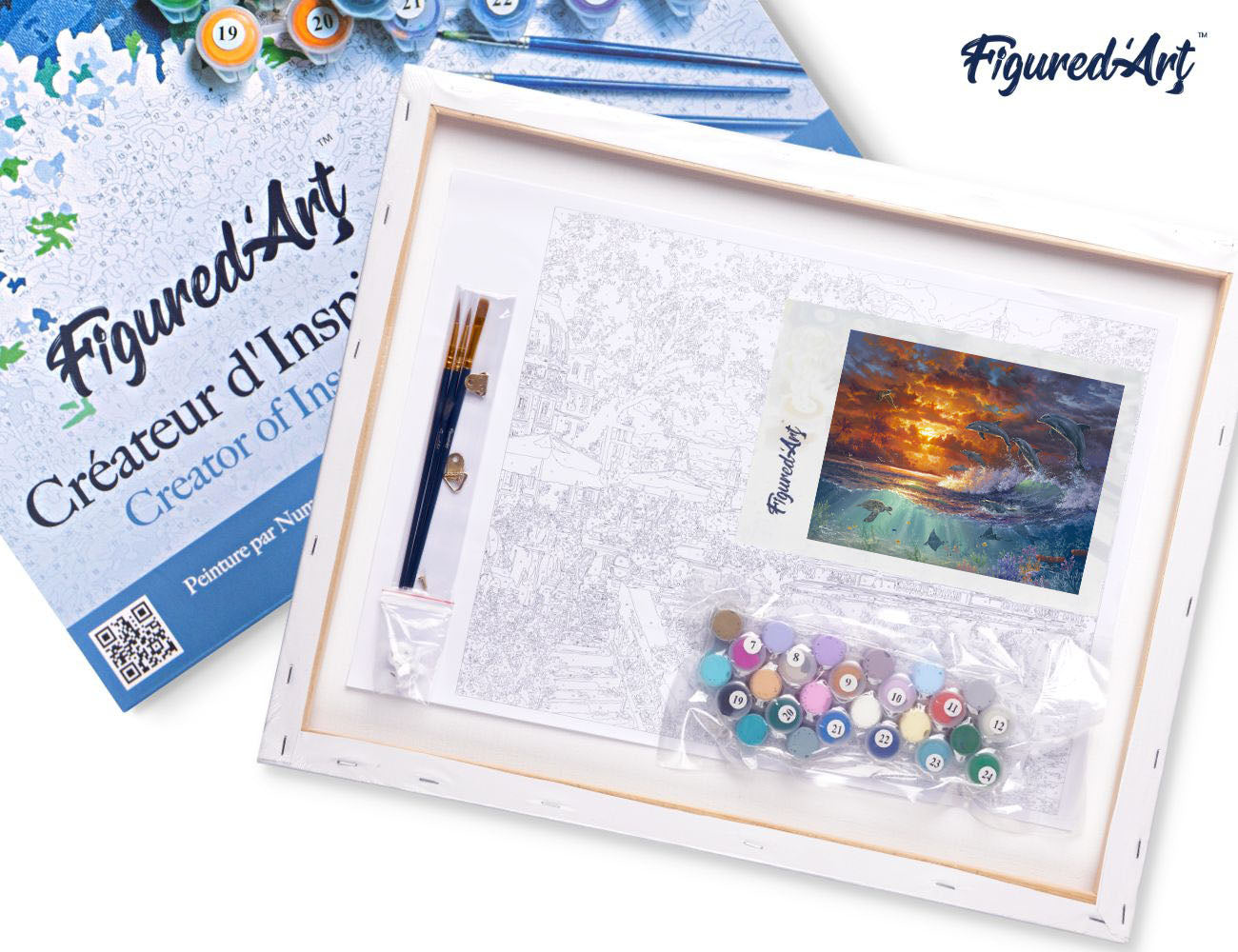 Malen nach Zahlen 40x50cm auf Keilrahmen gespannt Figured’Art Meer und Sonnenuntergang