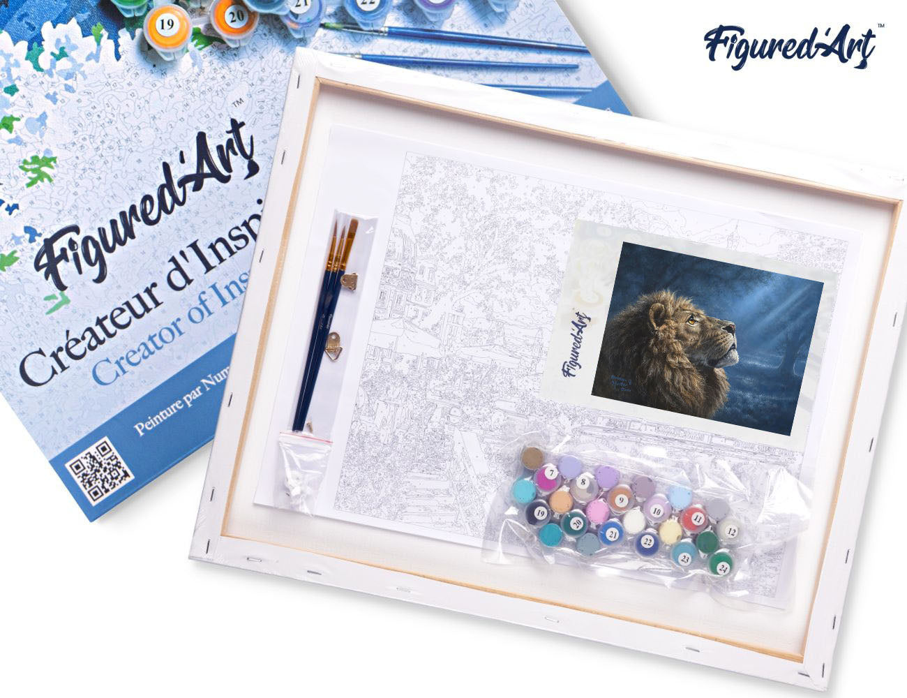 Malen nach Zahlen 40x50cm auf Keilrahmen gespannt Figured’Art Mondlicht Löwe