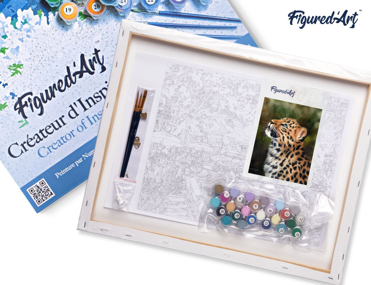 Malen nach Zahlen 40x50cm auf Keilrahmen gespannt Figured’Art Neugieriger Leopard