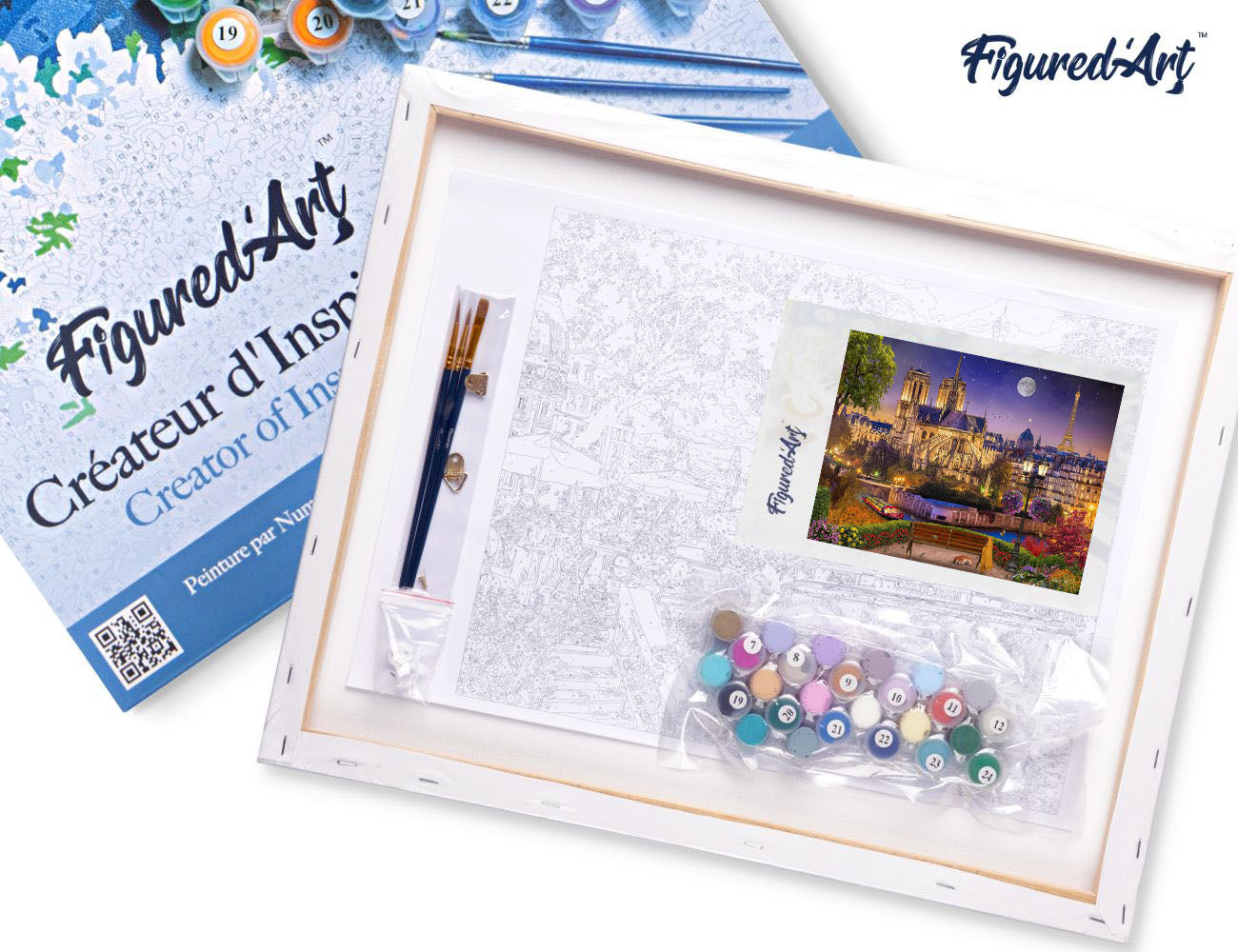 Malen nach Zahlen 40x50cm auf Keilrahmen gespannt Figured’Art Notre Dame unter den Sternen