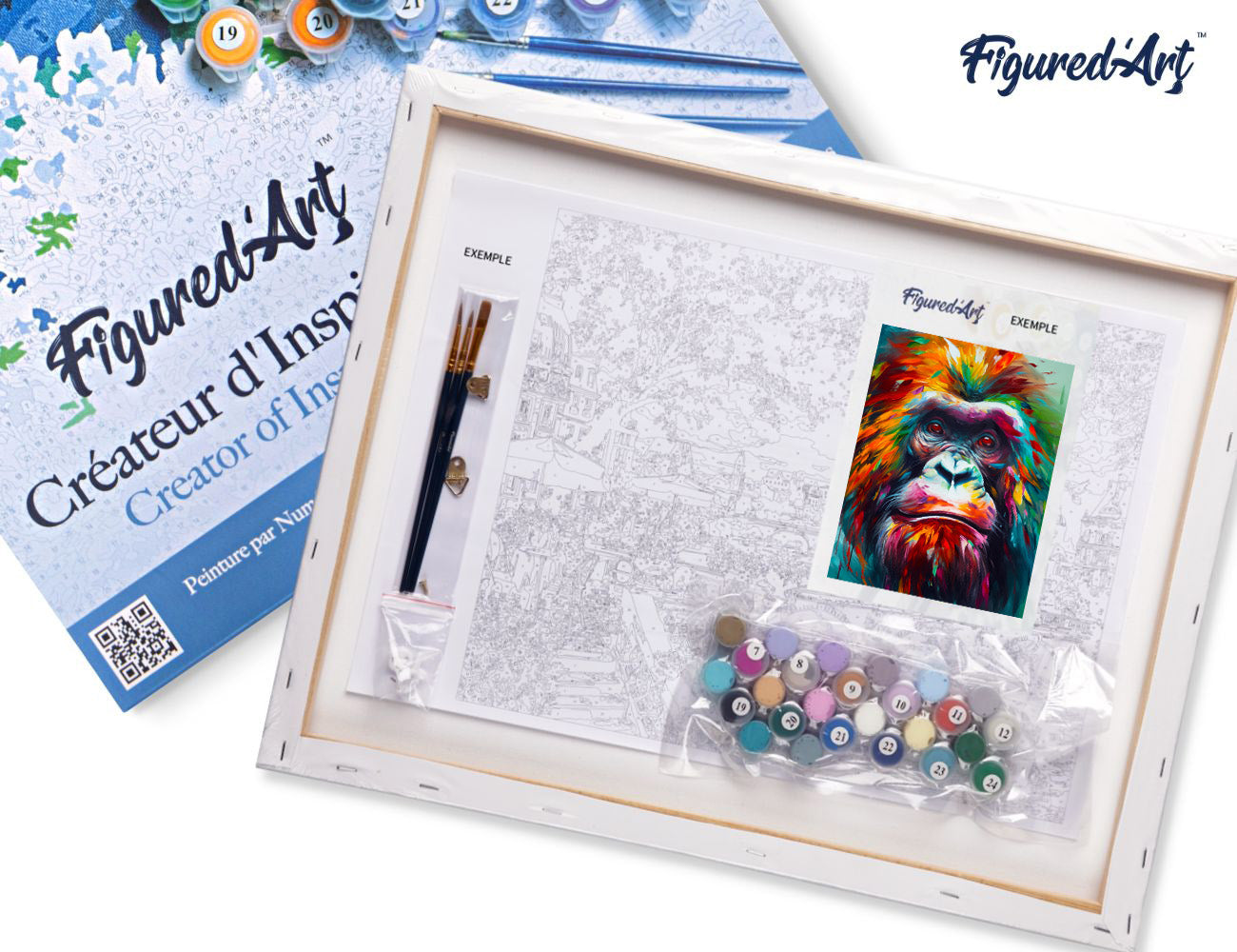 Malen nach Zahlen 40x50cm auf Keilrahmen gespannt Figured’Art Orang-Utan Farbenfroh Abstrakt