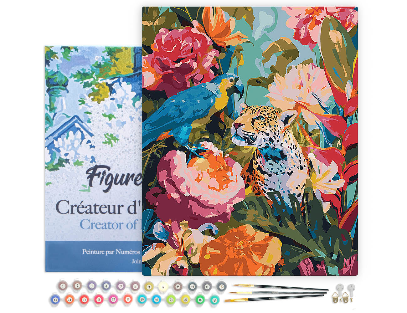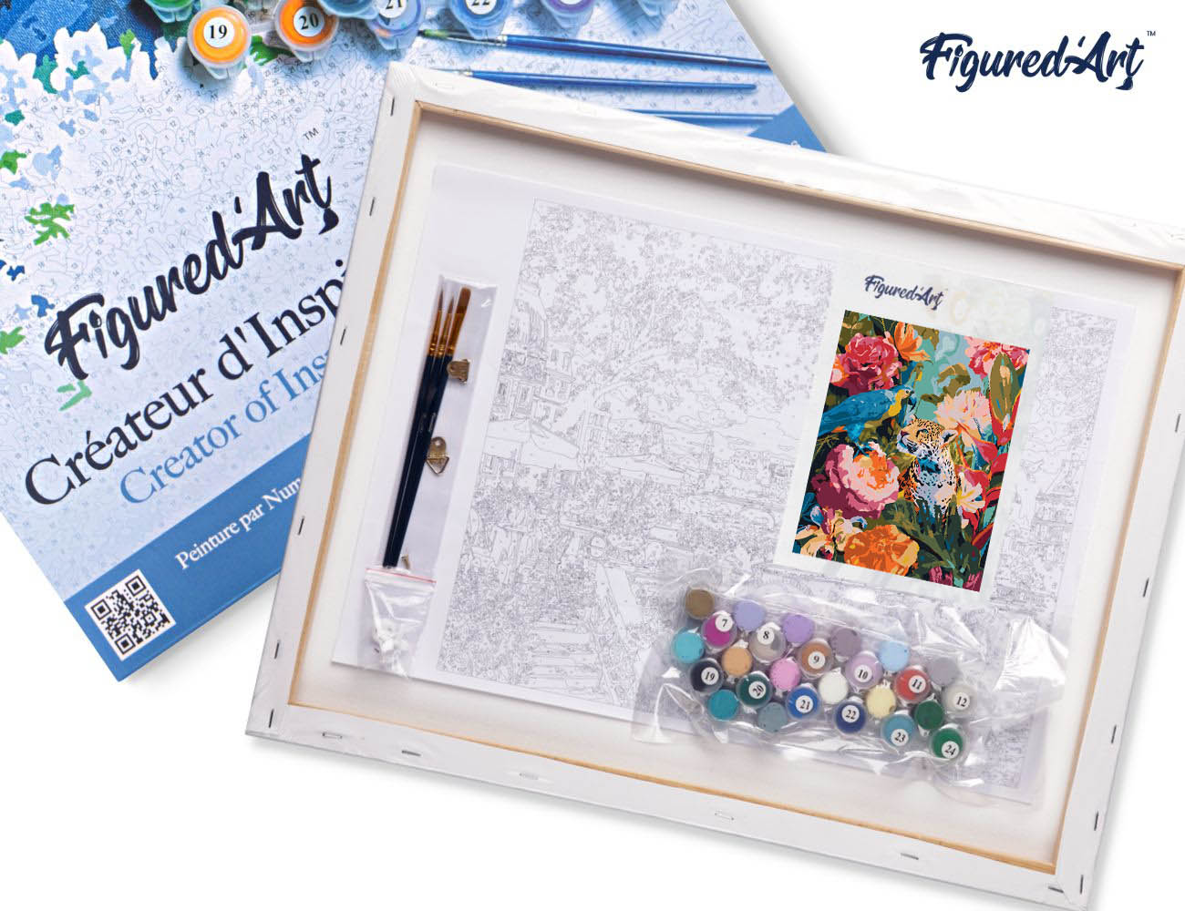 Malen nach Zahlen 40x50cm auf Keilrahmen gespannt Figured’Art Papagei und Leopard