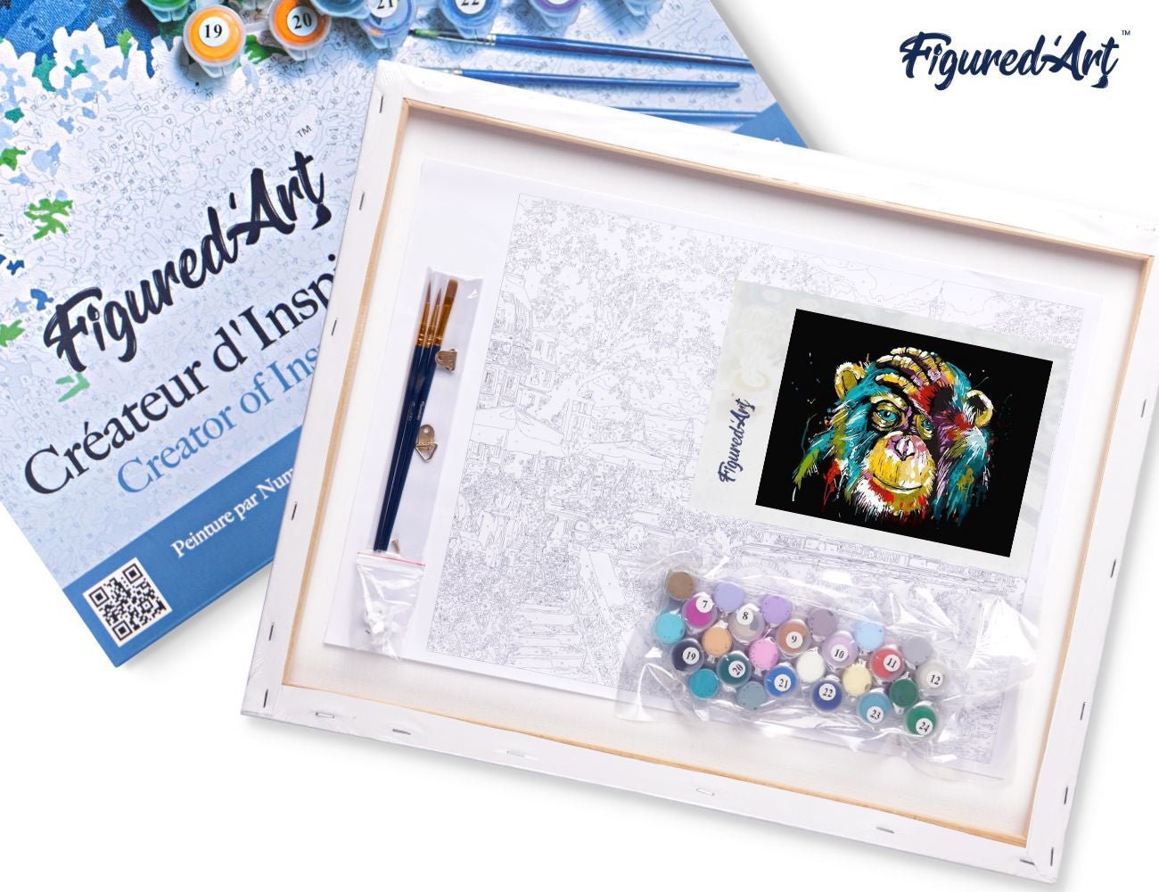 Malen nach Zahlen 40x50cm auf Keilrahmen gespannt Figured’Art Pop Art Pavian