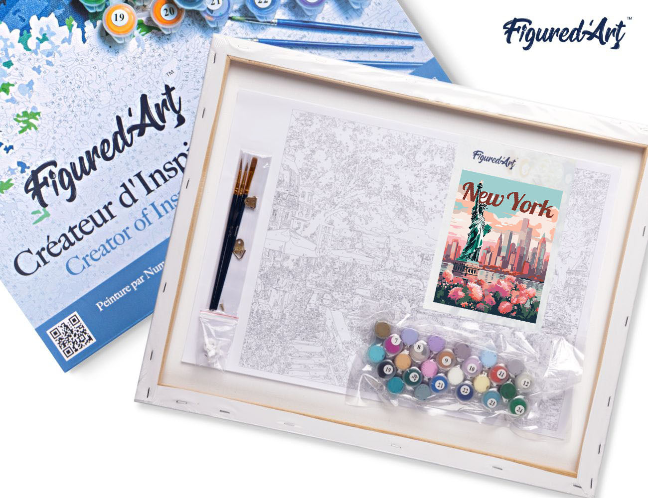 Malen nach Zahlen 40x50cm auf Keilrahmen gespannt Figured’Art Reiseposter New York in voller Blüte