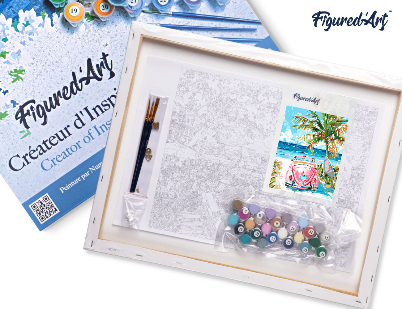 Malen nach Zahlen 40x50cm auf Keilrahmen gespannt Figured’Art Rosa Auto am Meer
