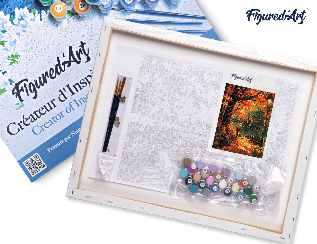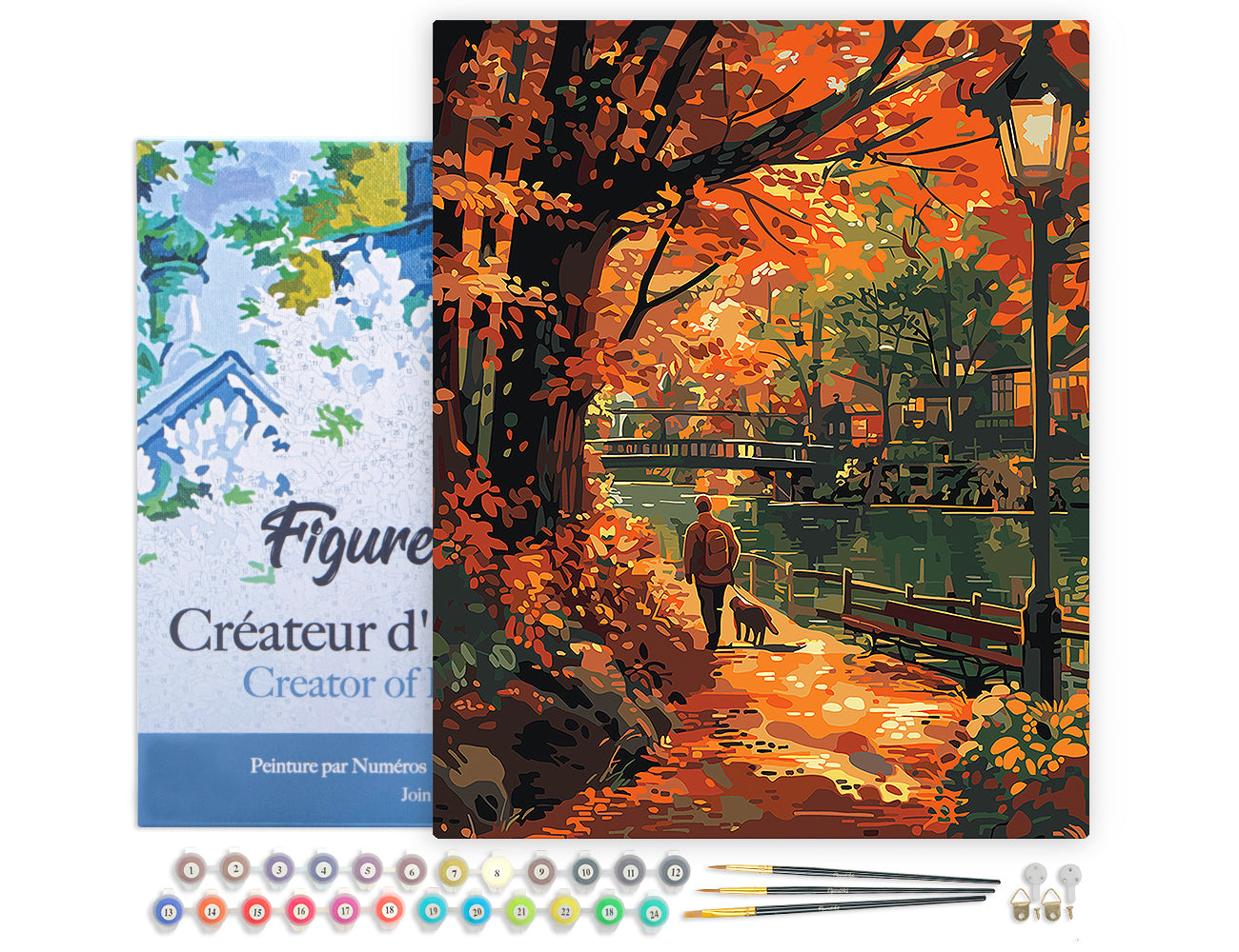 Malen nach Zahlen 40x50cm auf Keilrahmen gespannt Figured’Art Spaziergang mit dem Hund im Herbst
