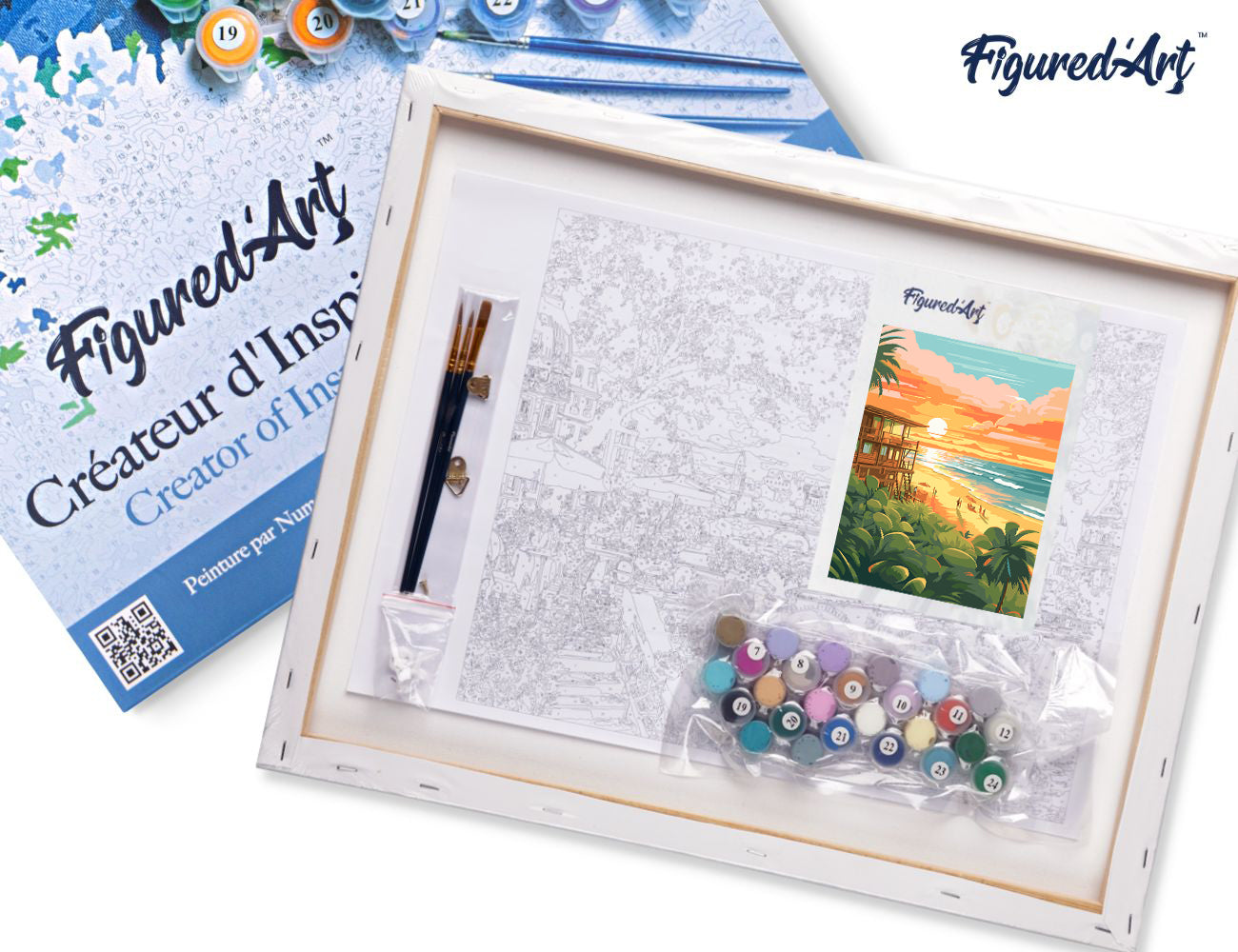Malen nach Zahlen 40x50cm auf Keilrahmen gespannt Figured’Art Strandclub bei Sonnenuntergang