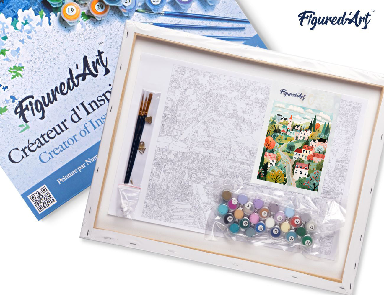 Malen nach Zahlen 40x50cm auf Keilrahmen gespannt Figured’Art Verzaubertes Dorf in Grün