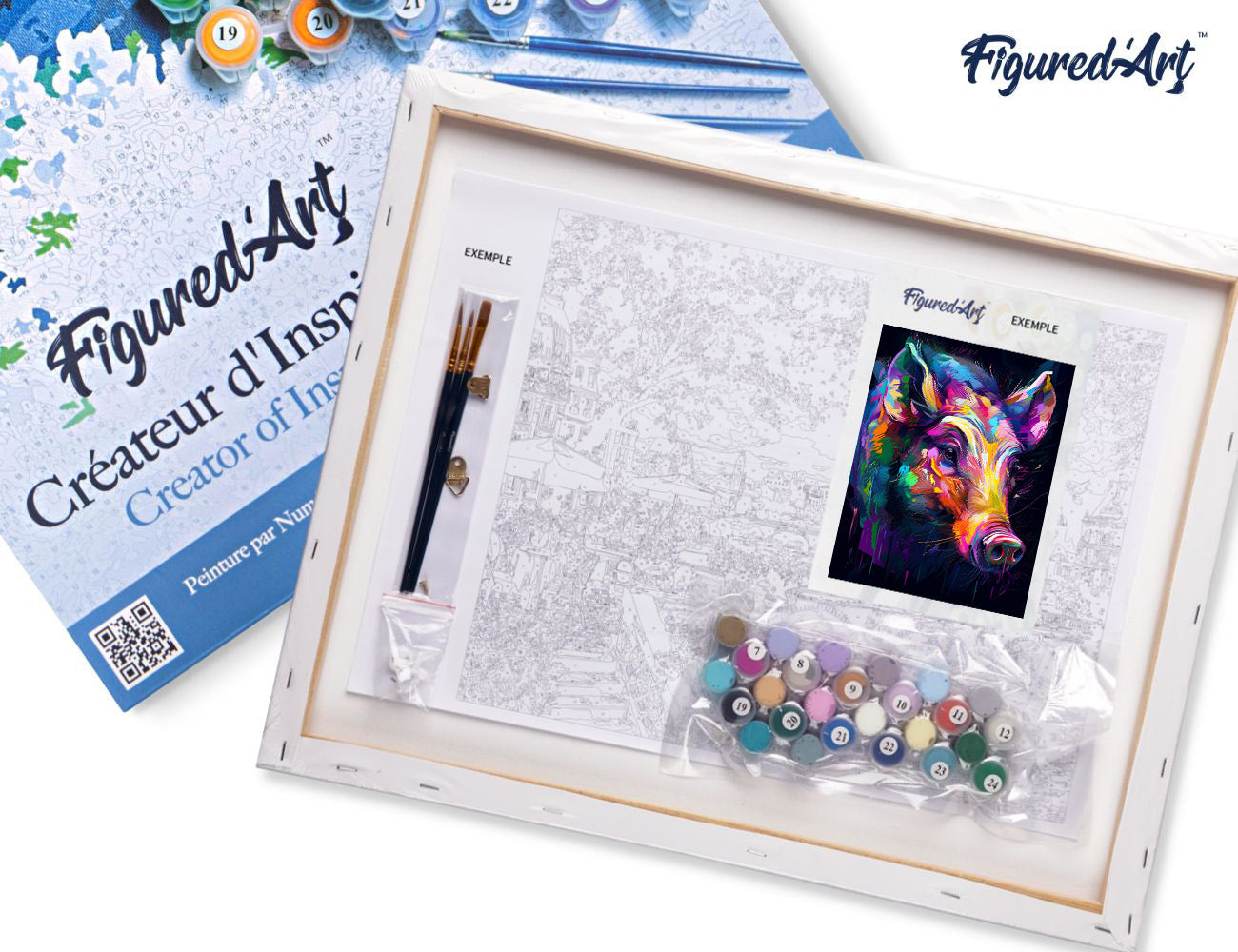 Malen nach Zahlen 40x50cm auf Keilrahmen gespannt Figured’Art Wildschwein Farbenfroh Abstrakt