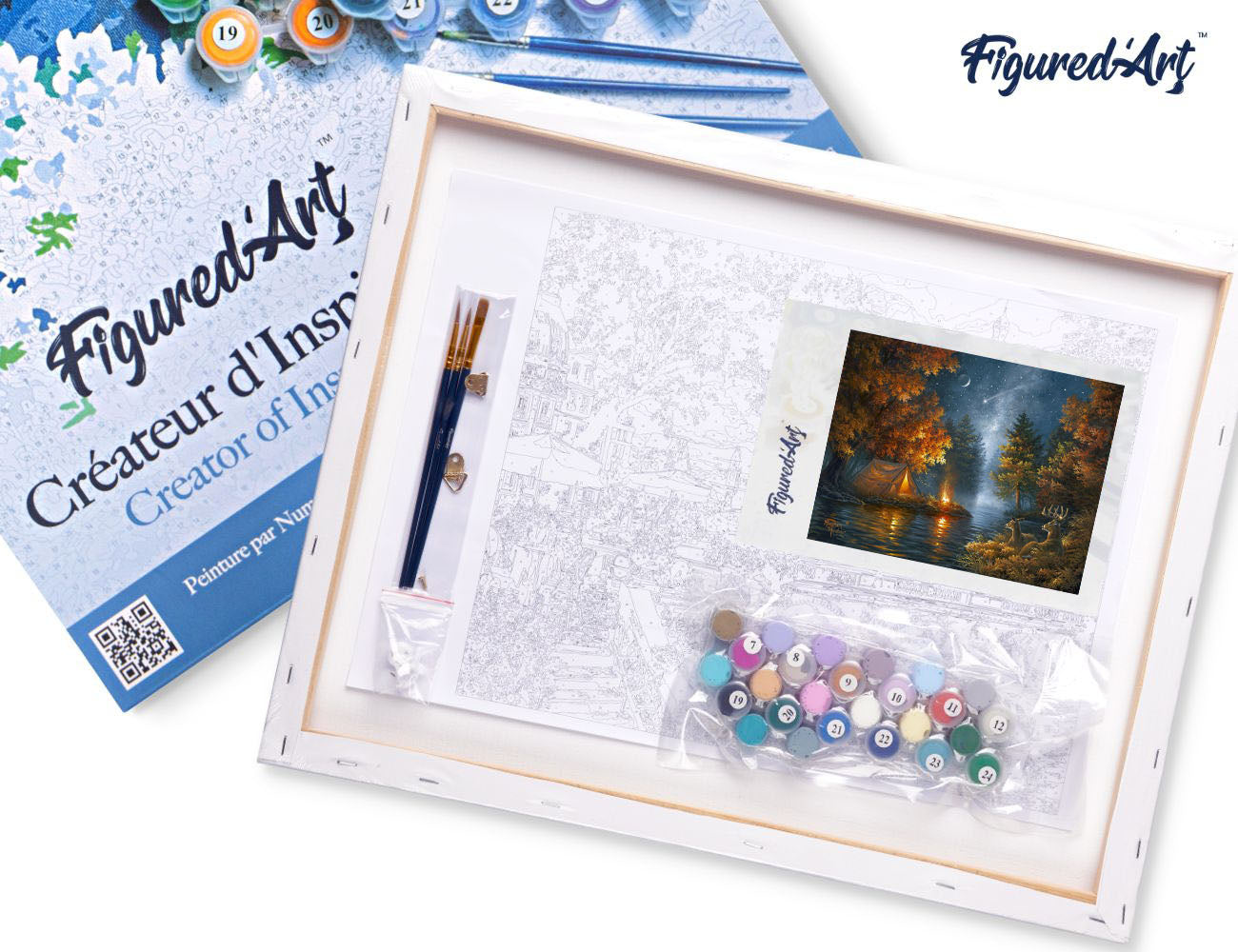 Malen nach Zahlen 40x50cm auf Keilrahmen gespannt Figured’Art Zelten unter dem Sternenhimmel