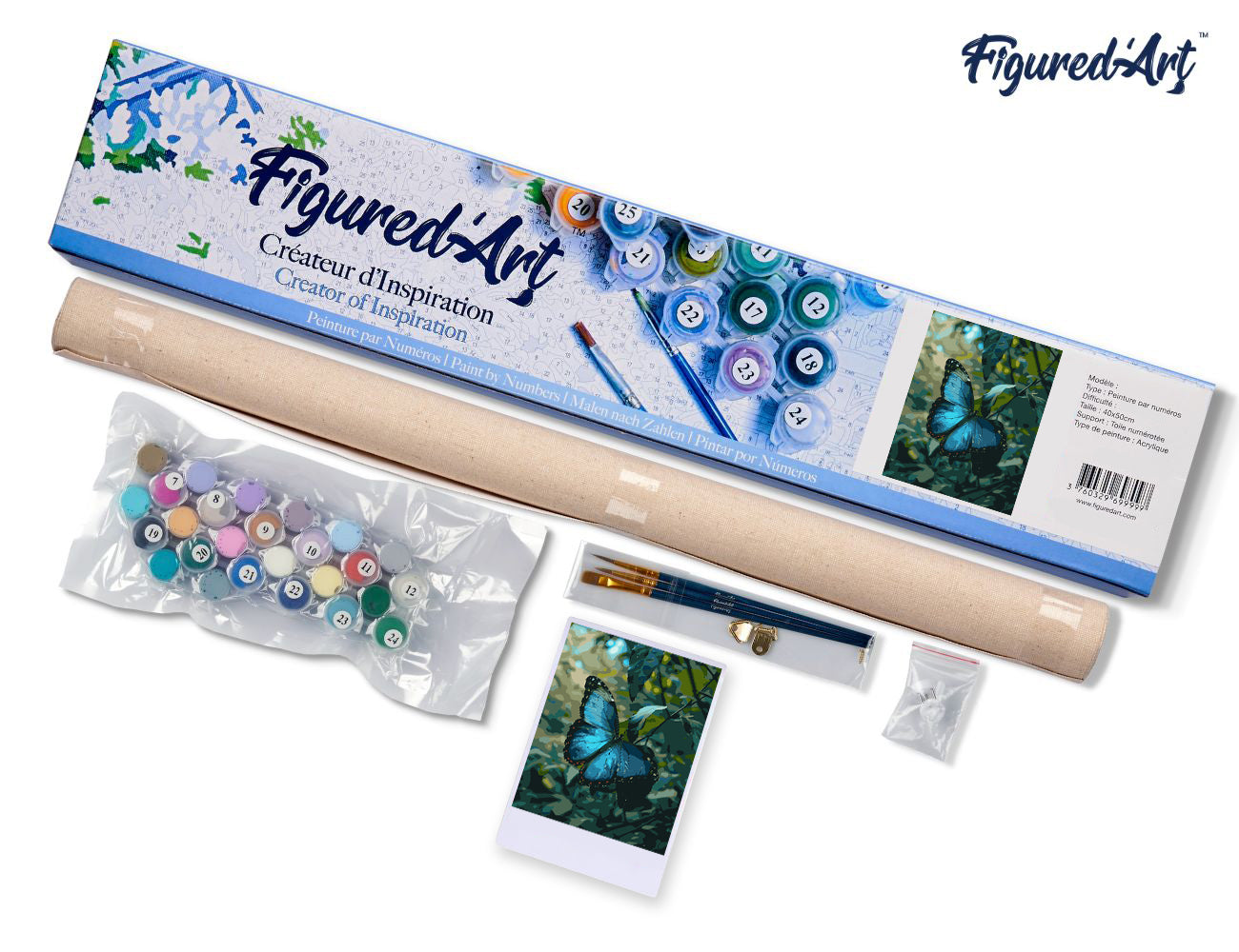 Malen nach Zahlen 40x50cm ohne Keilrahmen Figured’Art Blauer Morpho Schmetterling