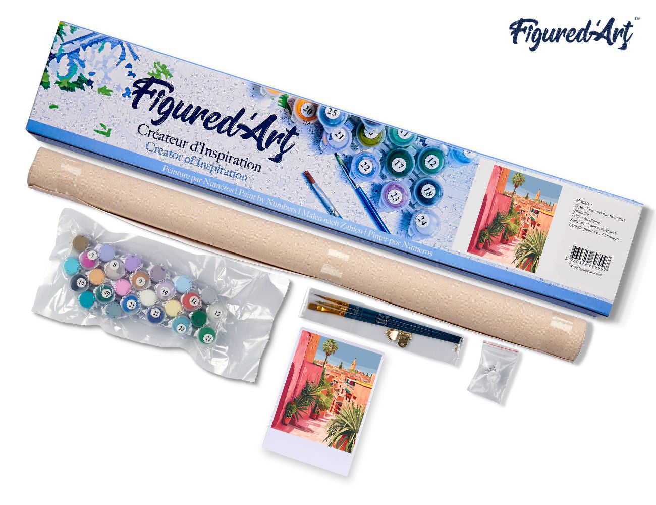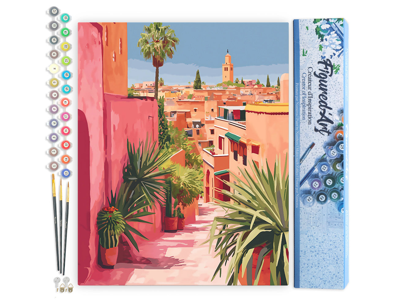 Malen nach Zahlen 40x50cm ohne Keilrahmen Figured’Art Blick auf eine marokkanische Stadt