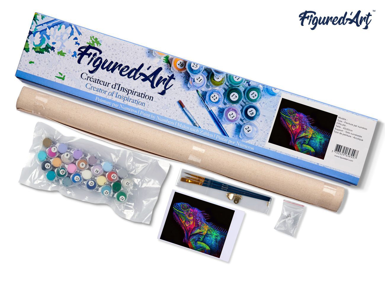 Malen nach Zahlen 40x50cm ohne Keilrahmen Figured’Art Buntes Chamäleon