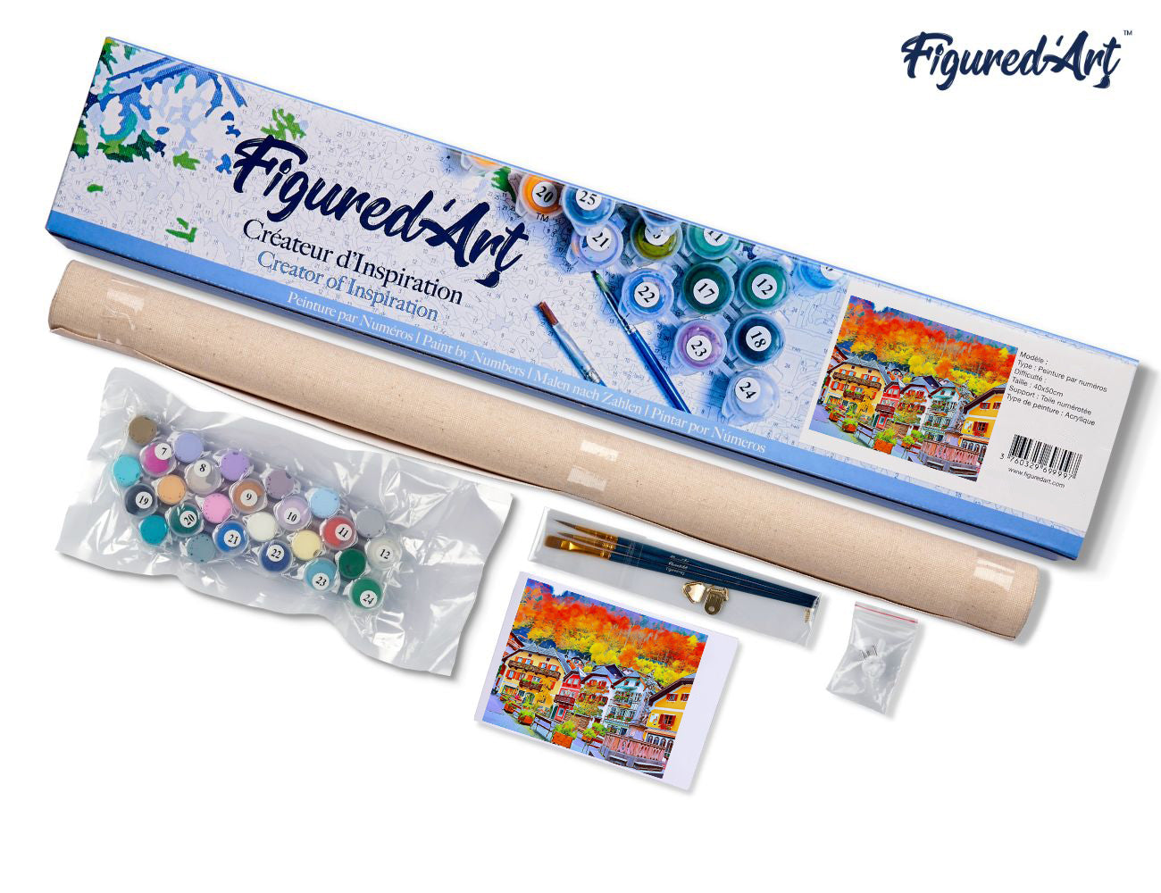 Malen nach Zahlen 40x50cm ohne Keilrahmen Figured’Art Buntes schweizer Dorf