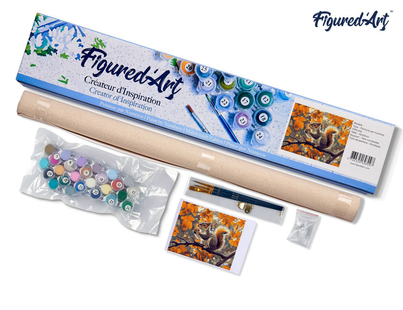 Malen nach Zahlen 40x50cm ohne Keilrahmen Figured’Art Eichhörnchen im Herbst