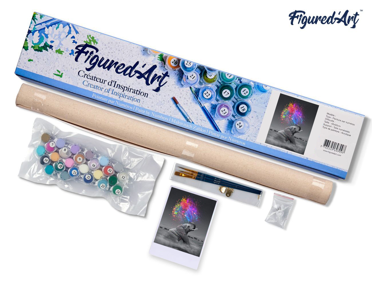 Malen nach Zahlen 40x50cm ohne Keilrahmen Figured’Art Elefant und Farbexplosion