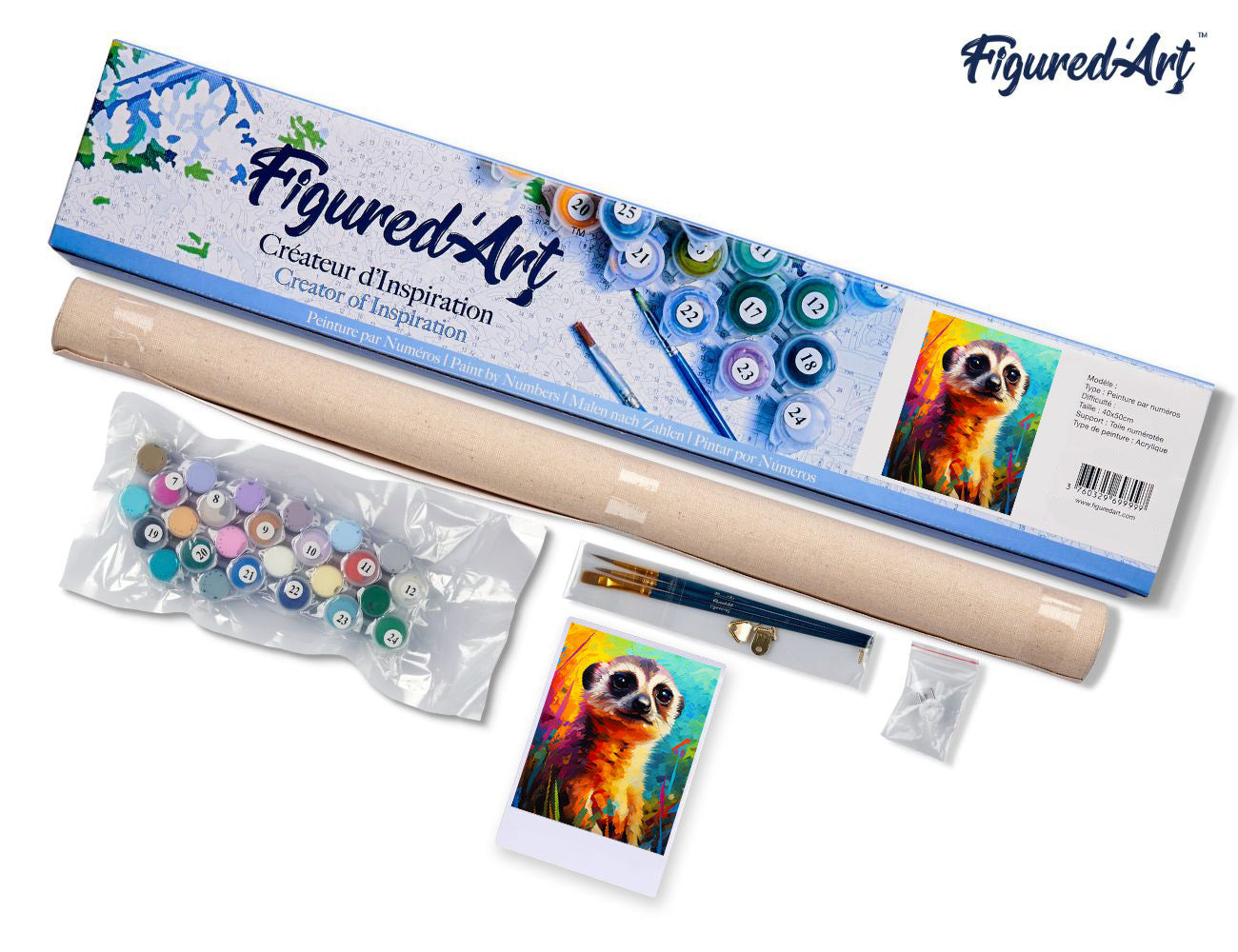 Malen nach Zahlen 40x50cm ohne Keilrahmen Figured’Art Erdmännchen Farbenfroh Abstrakt