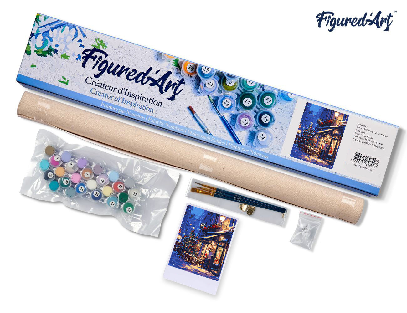 Malen nach Zahlen 40x50cm ohne Keilrahmen Figured’Art Festliches Café bei Nacht