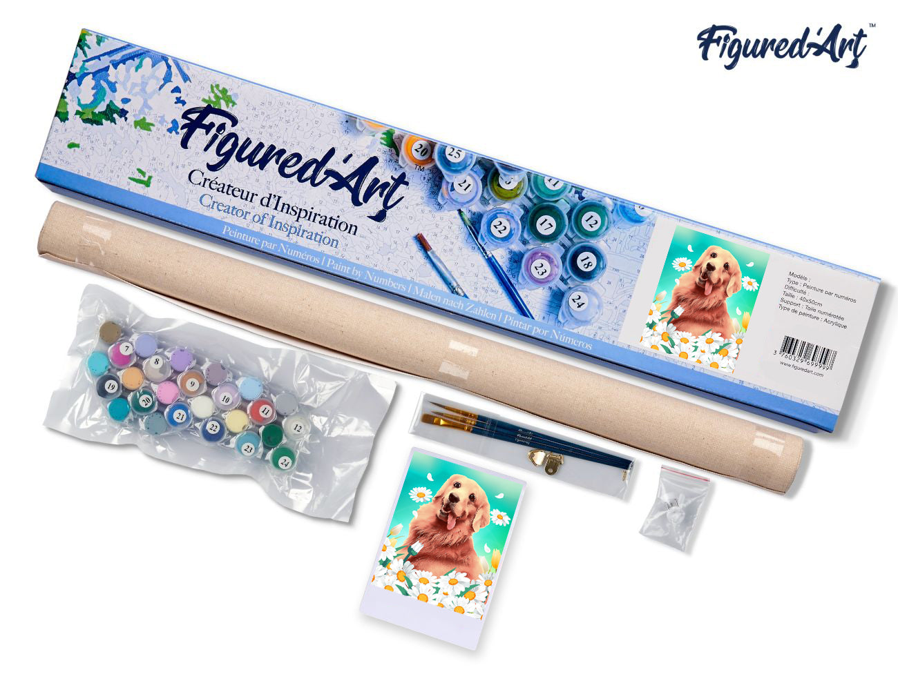 Malen nach Zahlen 40x50cm ohne Keilrahmen Figured’Art Golden Retriever