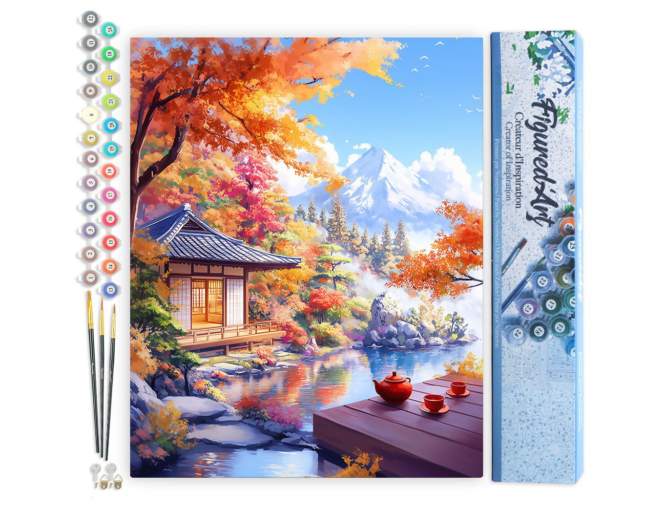 Malen nach Zahlen 40x50cm ohne Keilrahmen Figured’Art Herbstliches Teehaus am Seeufer
