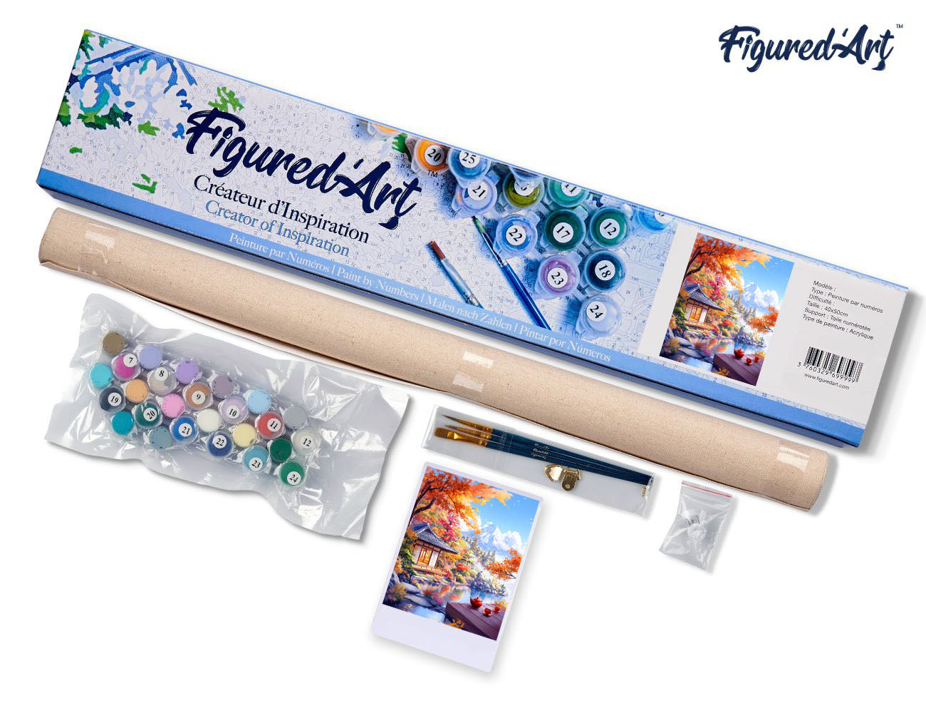 Dieses Malen nach Zahlen Set enthält alles Notwendige um Ihr eigenes Kunstwerk zu verwirklichen: 1 nummerierte Leinwand, 3 Nylon-Pinsel in verschiedenen Grössen, 1 nummeriertes Farbset, 1 Papierausdruck Ihres Motives zur Veranschaulichung, 2 Schrauben + 2 Haken für die Befestigung an die Wand. Grösse 40x50cm, Gerollte Leinwand ohen Rahmen, 20-24 Töpfe mit Acrylfarben, Gewicht: 0.3kg.