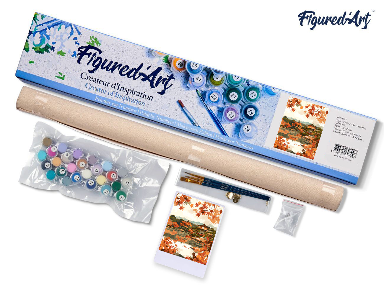 Malen nach Zahlen 40x50cm ohne Keilrahmen Figured’Art Japanischer Tempel am See im Herbst