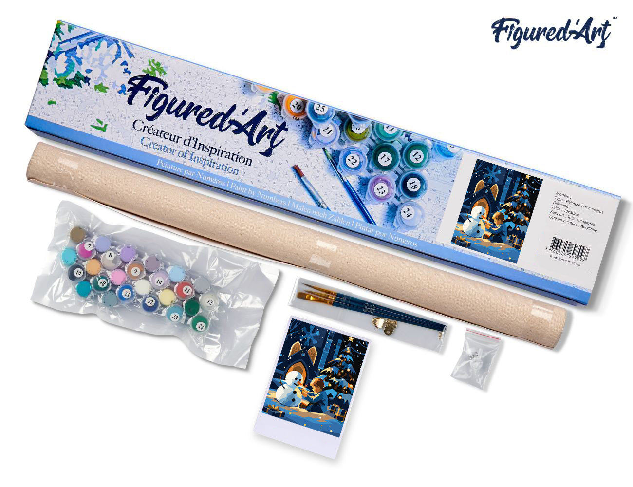 Malen nach Zahlen 40x50cm ohne Keilrahmen Figured’Art Junge und Schneemann in einer Winternacht
