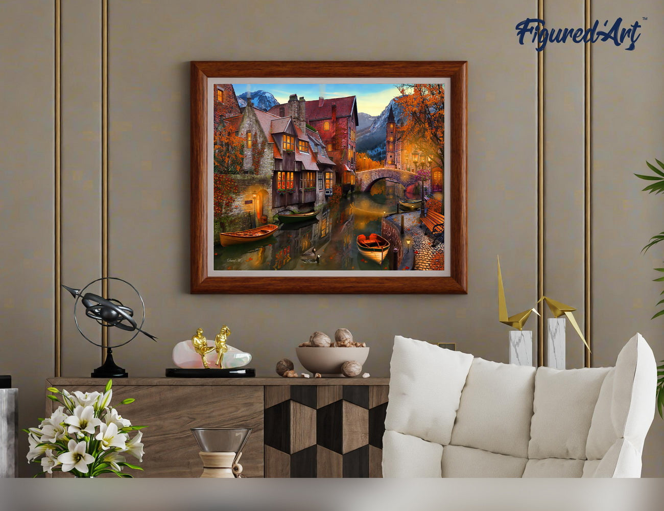 Malen nach Zahlen 40x50cm ohne Keilrahmen Figured’Art Kanal im Herbst