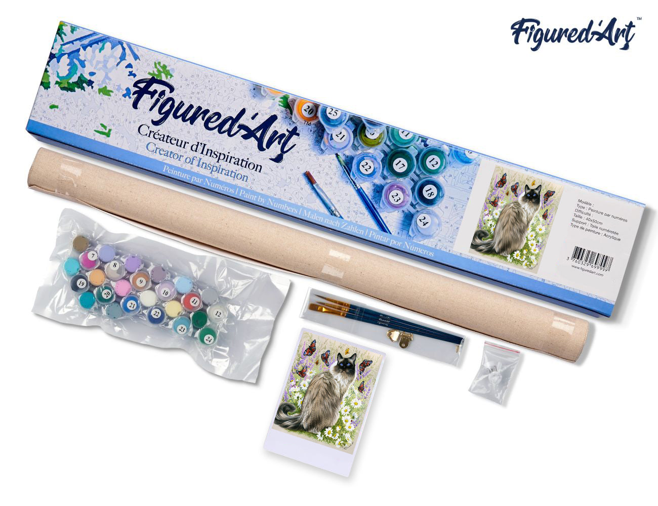 Malen nach Zahlen 40x50cm ohne Keilrahmen Figured’Art Katze und Schmetterlinge